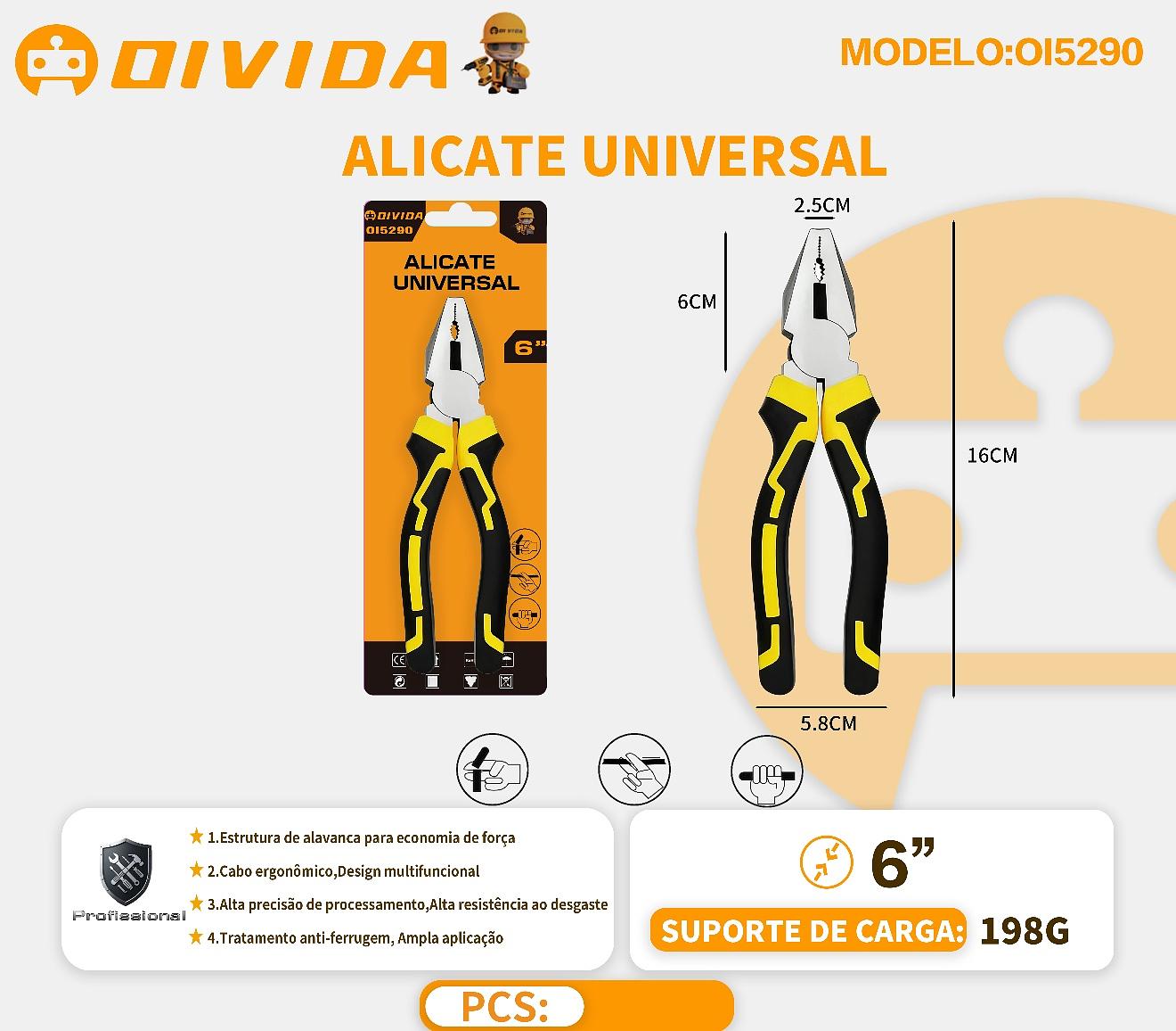 1 Alicate Universal 6'' Aço Carbono Emborrachado Isolado