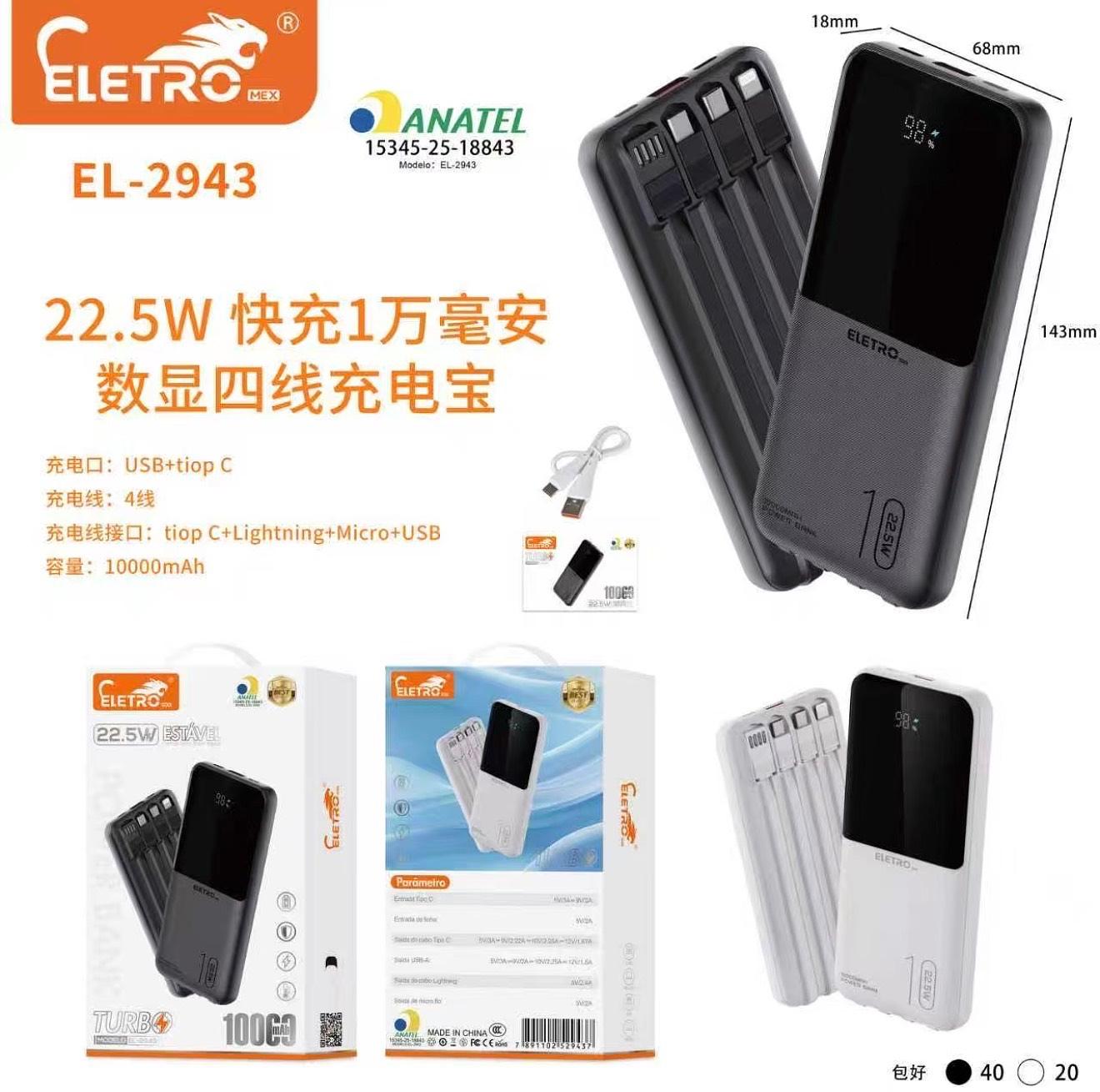 10000mah Power bank com carregamento rápido para alguns celulares com display de 22,5w com 4cabo