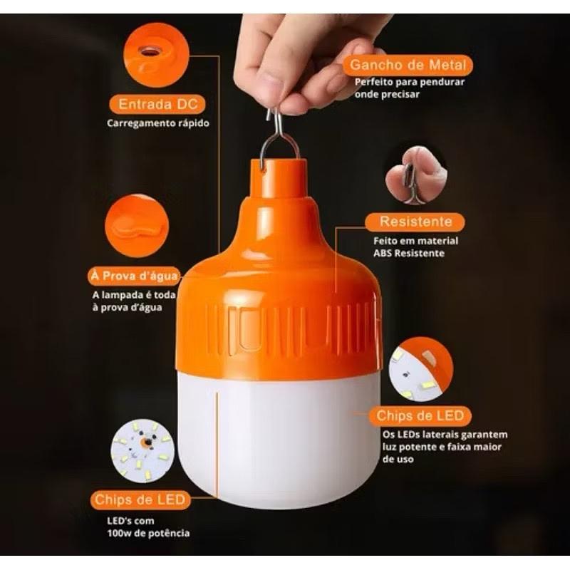 100W Lâmpadas Led Bulbo Branco Frio Recarregável para Emergência