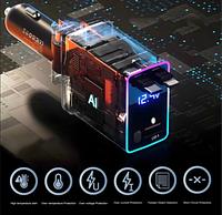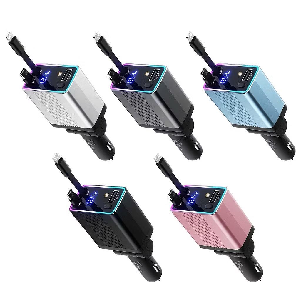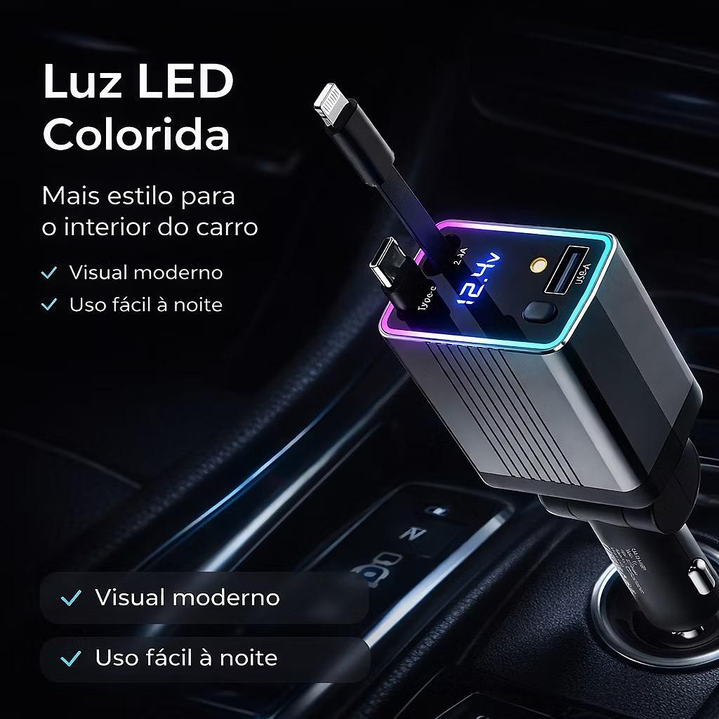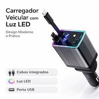 120W Carregador Veicular Turbo com Cabo Retrátil USB-C e Lightning Display LED