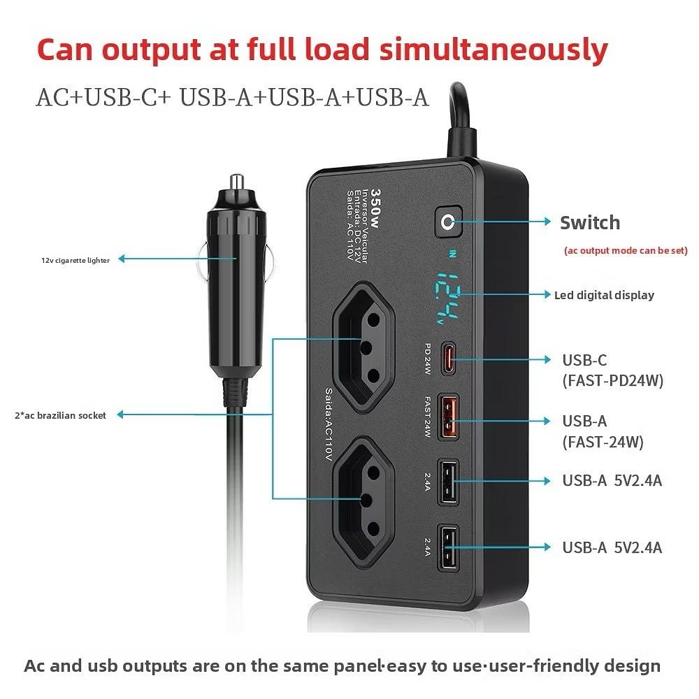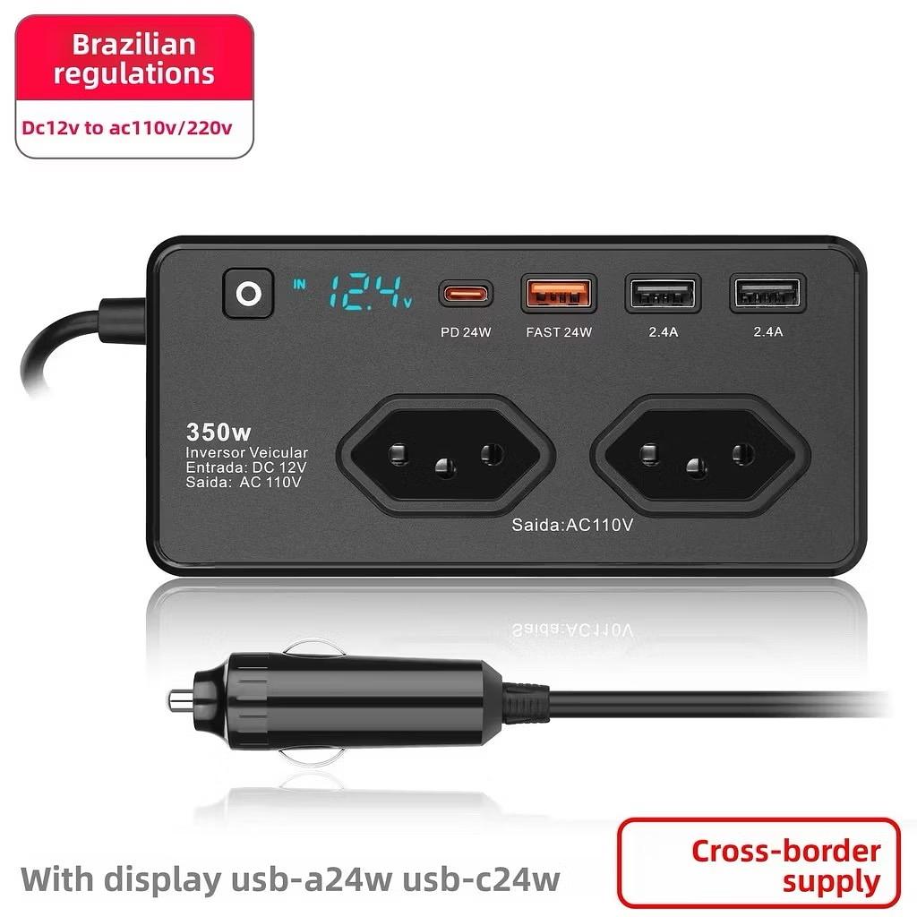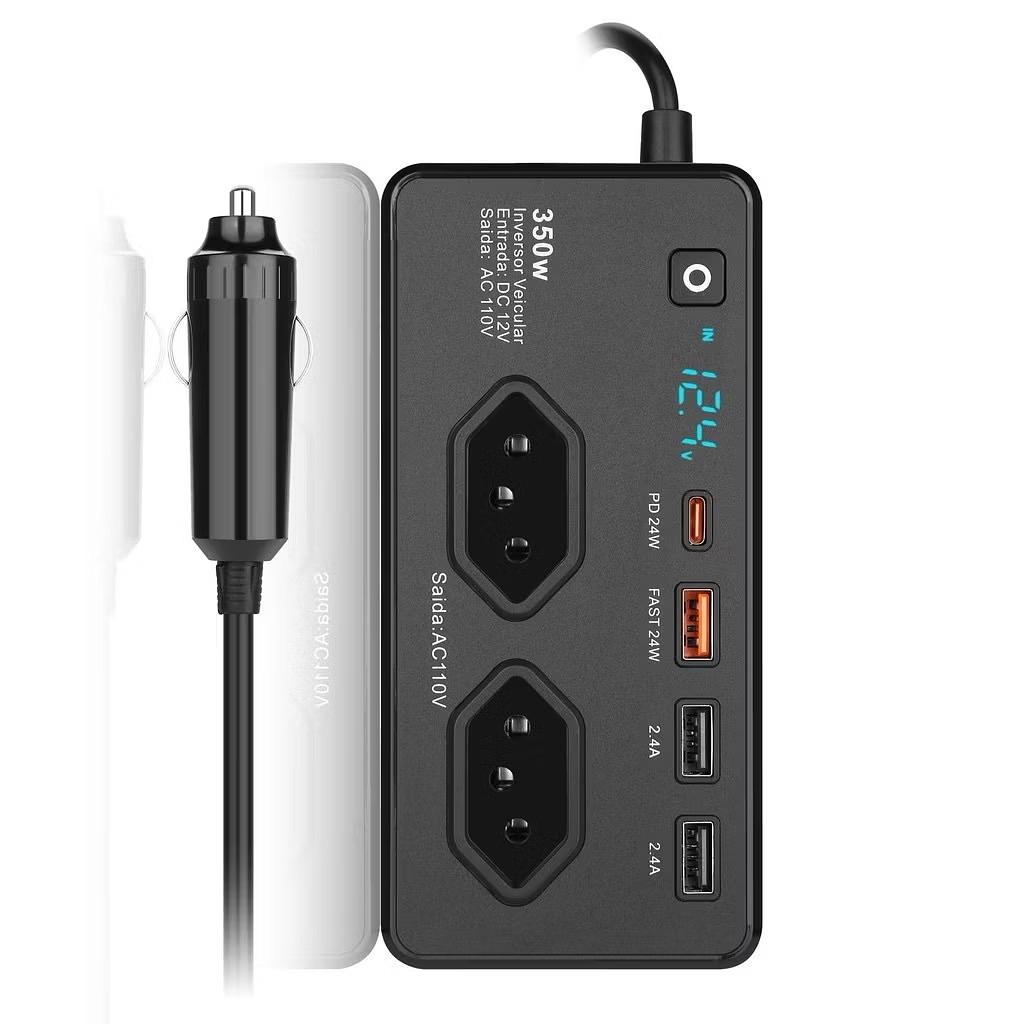350W Isqueiro Do Carro Plug Conversor De Tensão 2 USB 2 Tipo-C Porta Veículos Carregamento Rápido Portátil Energia—110V