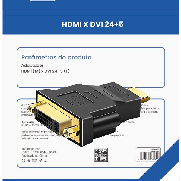ADAPTADOR DVI FEMEA P/ HDMI MACHO