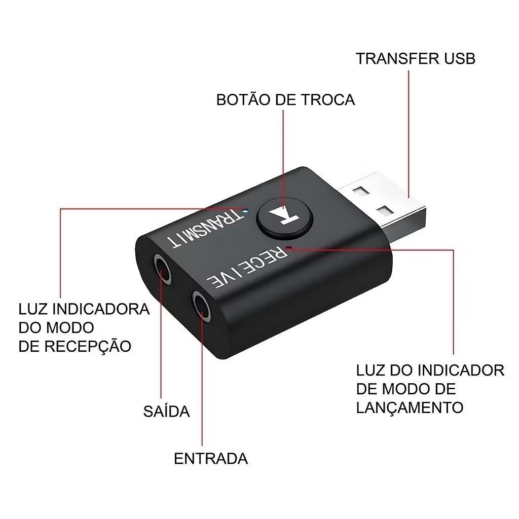 Adaptador Receptor Transmissor de Áudio e Vídeo via Bluetooth 5.0 +Cabo Auxiliar P2 X-Cell XC