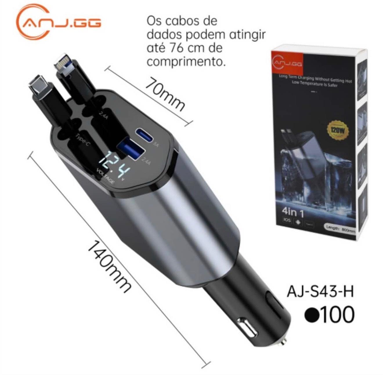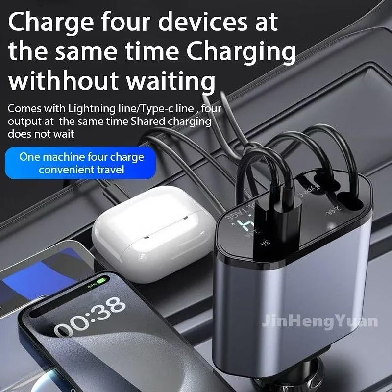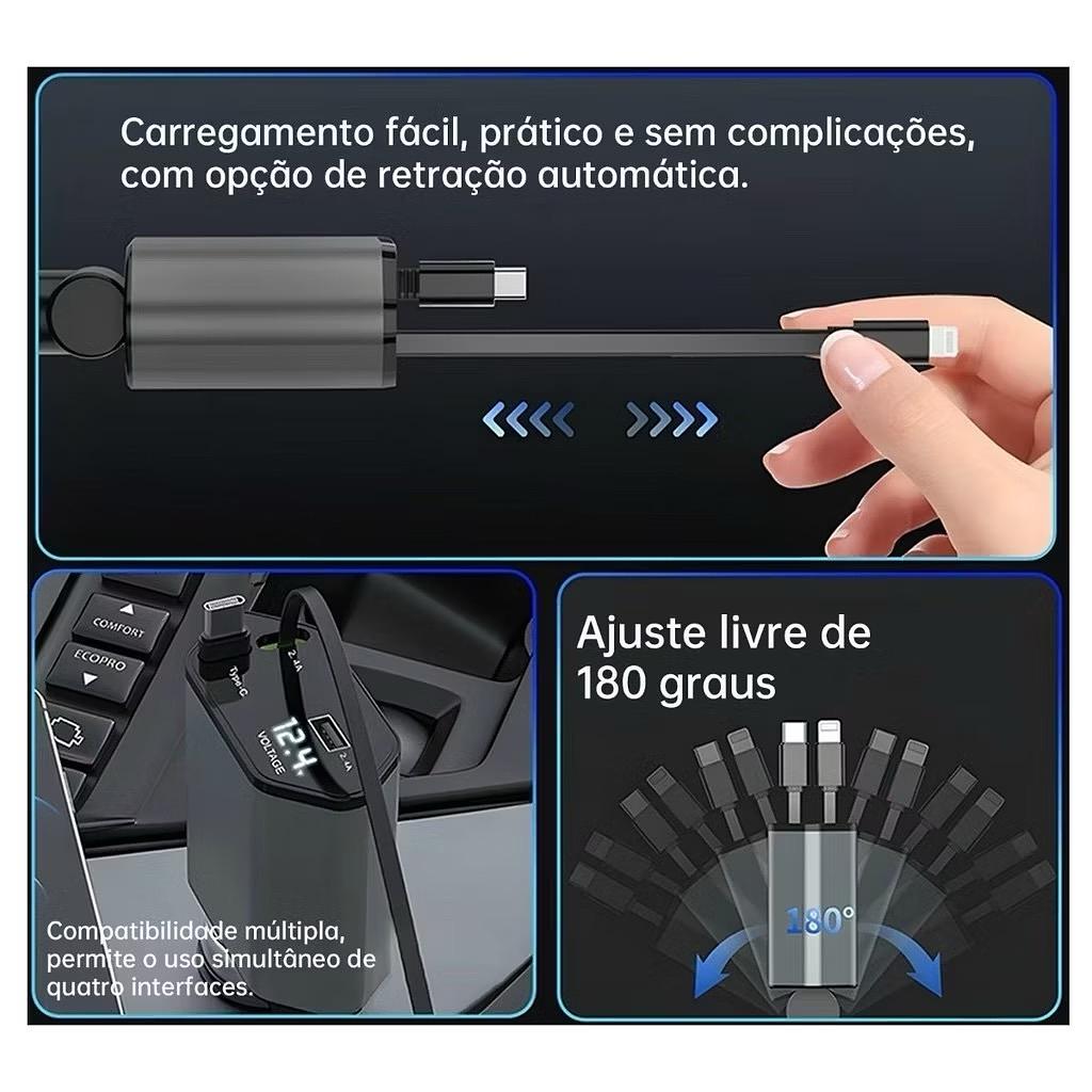 Adaptador Retrátil De Carregador De Carro 4 Em 1 120W USB Type C Cabo Rápido Para Telefone