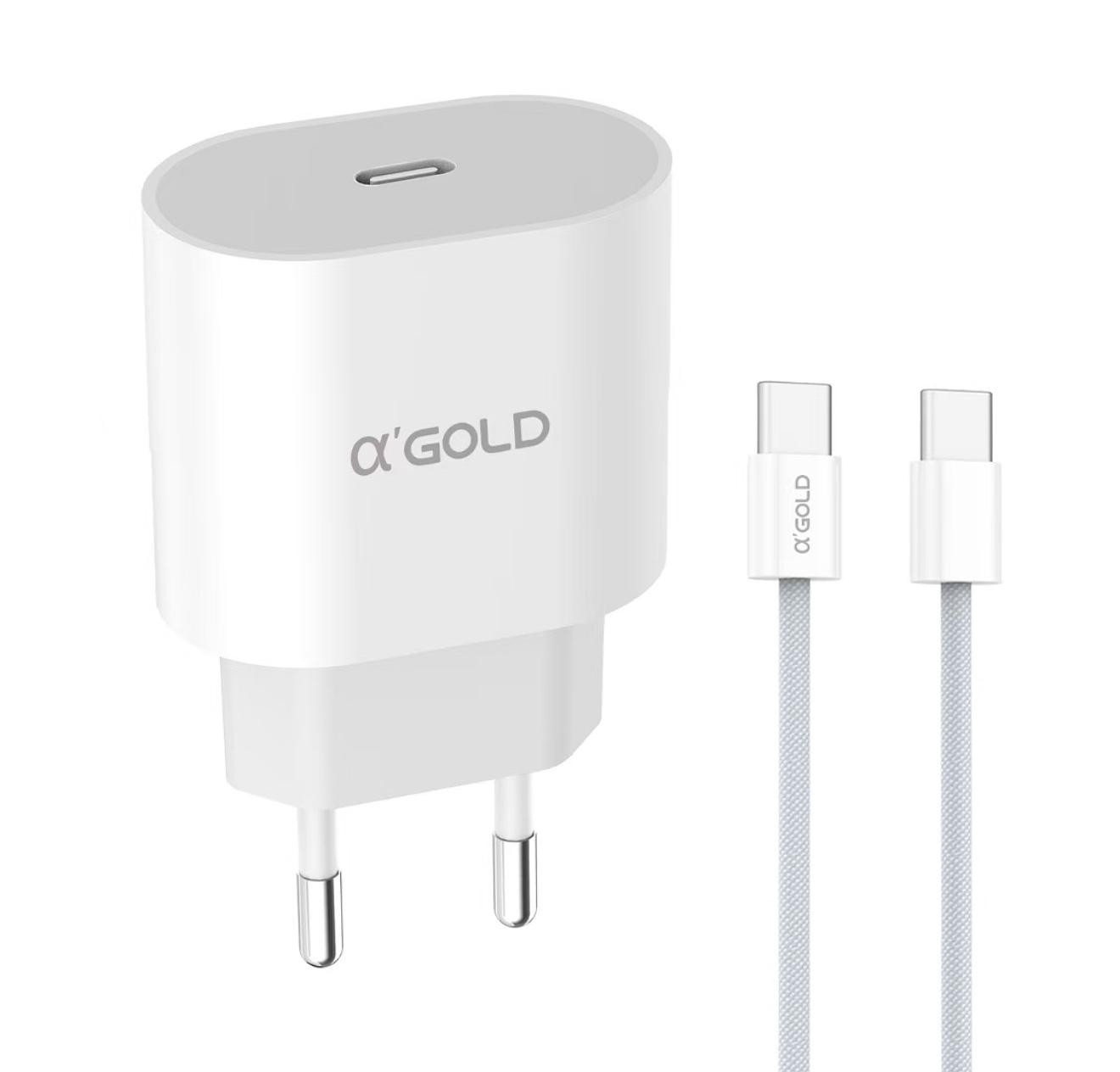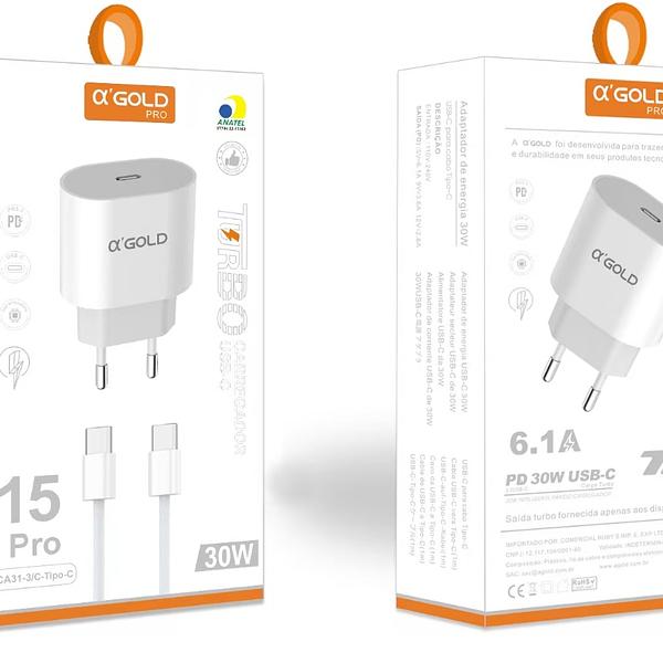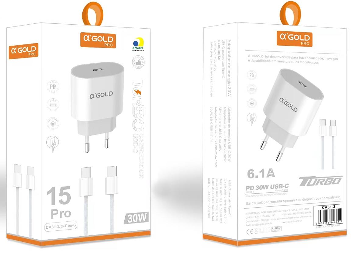A'Gold CA31-3Carregador Turbo Tipo C Para iPhone 15 16 Carregamento Fast Cor Branco