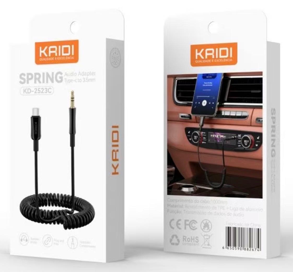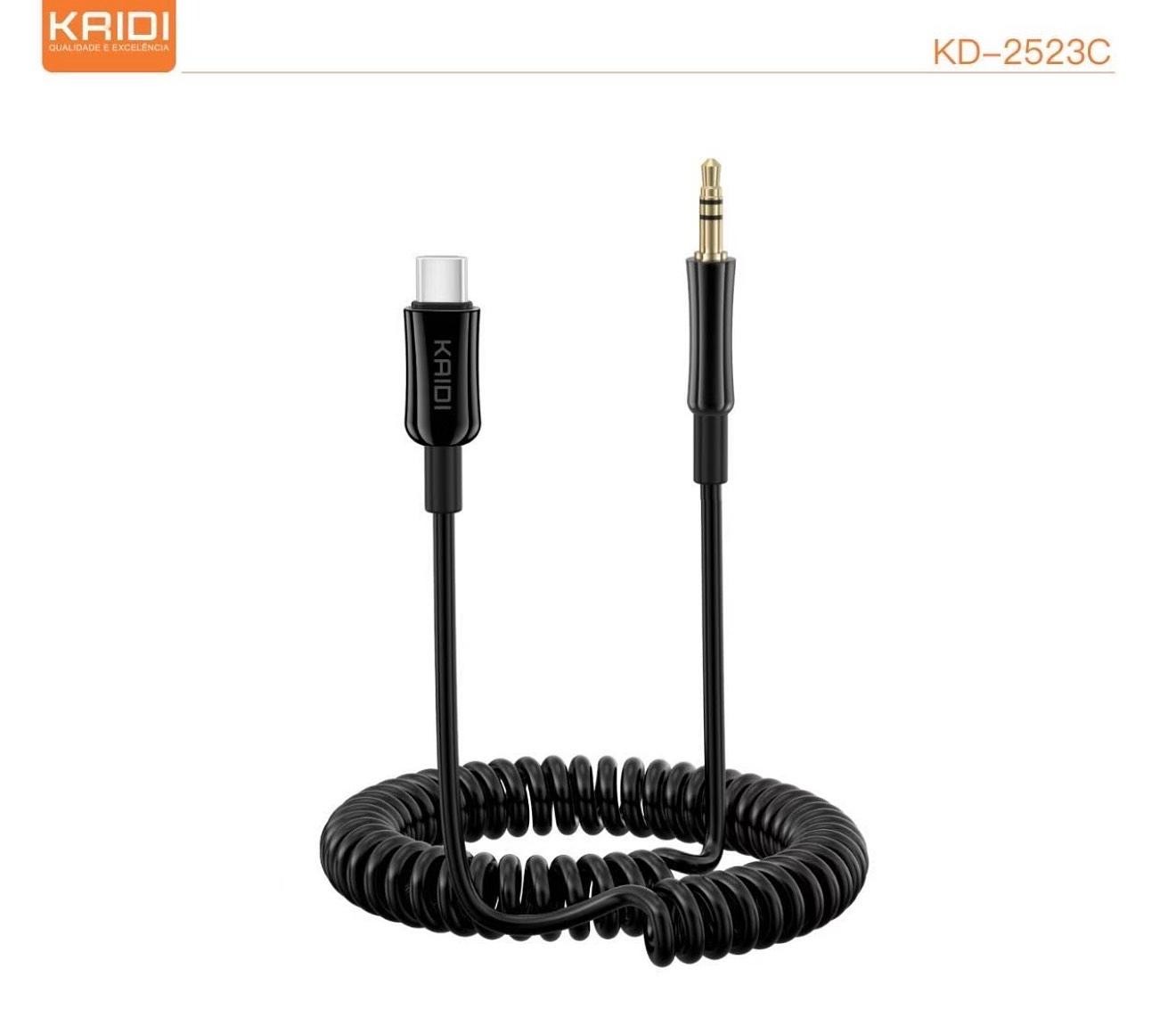 Cabo adaptador de Áudio Tipo C para P2 Fone Mola Espiral KAIDI KD-2523C