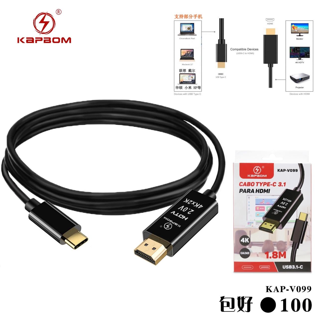 Cabo Tipo-c X Hdmi 4k 1.8m P/ New Macbook Pro