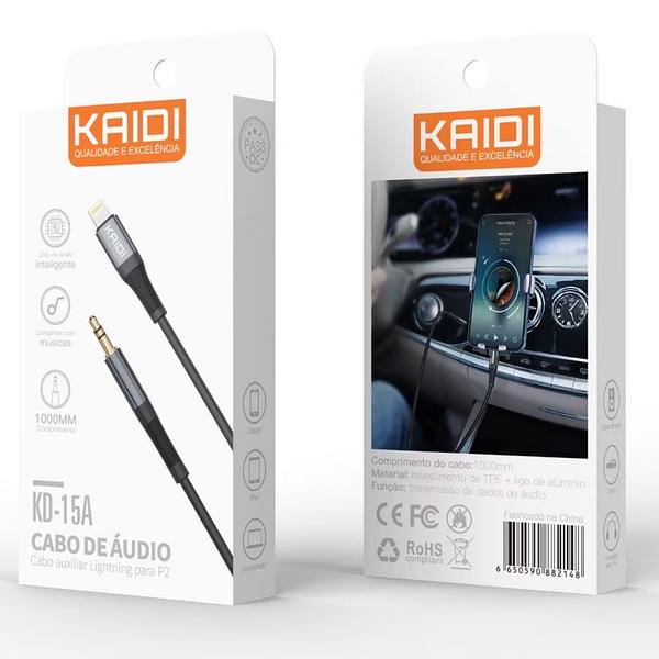 Cabo Áudio Auxiliar Lightning P2 Músicas Caixa Som Cel Carro—Kadi
