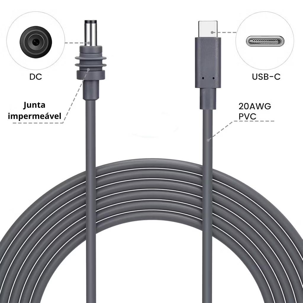 Cabo de Alimentação Starlink 3 Metros Tipo-C PD para DC Robusto e Durável
