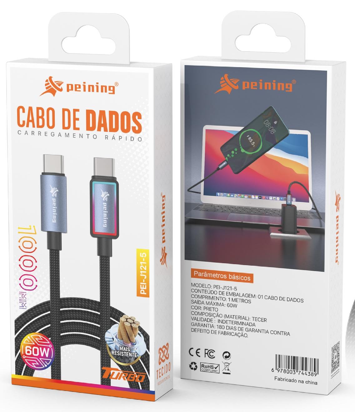 Cabo de Carregamento Premium turbo 60W Tipo-C para Tipo-C—Super Rapido