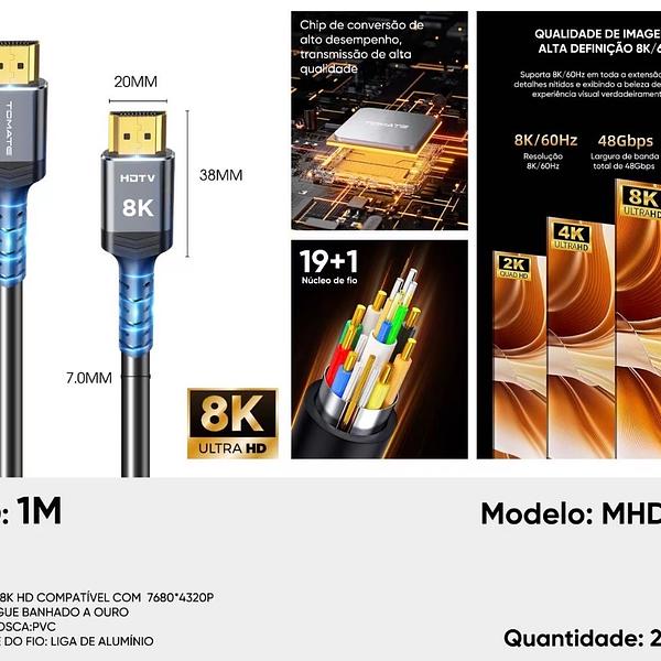 Cabo Hdmi 2.1 8k/60hz 4k/120hz Hdr Uhd 48gbps Hi-speed 1m—TOMATE
