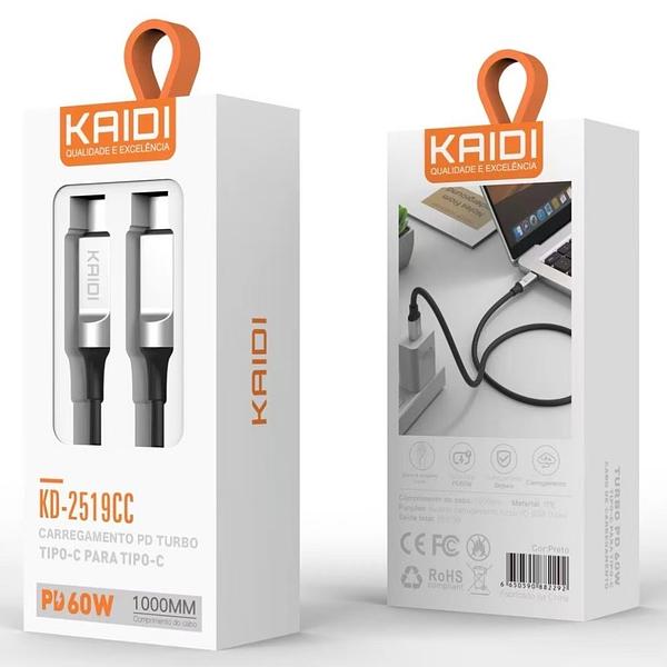 Cabo Kaidi Usb - C Duplo Reforçado Pd 60w Tipo C - Tipo C 1Metro KD-2519CC