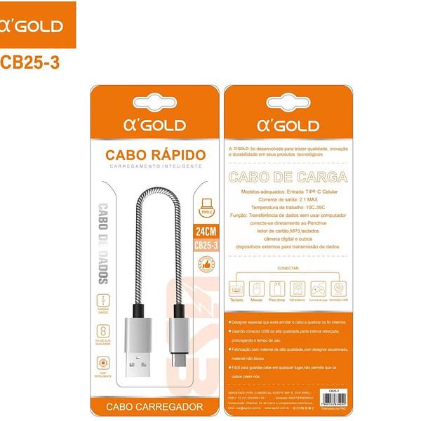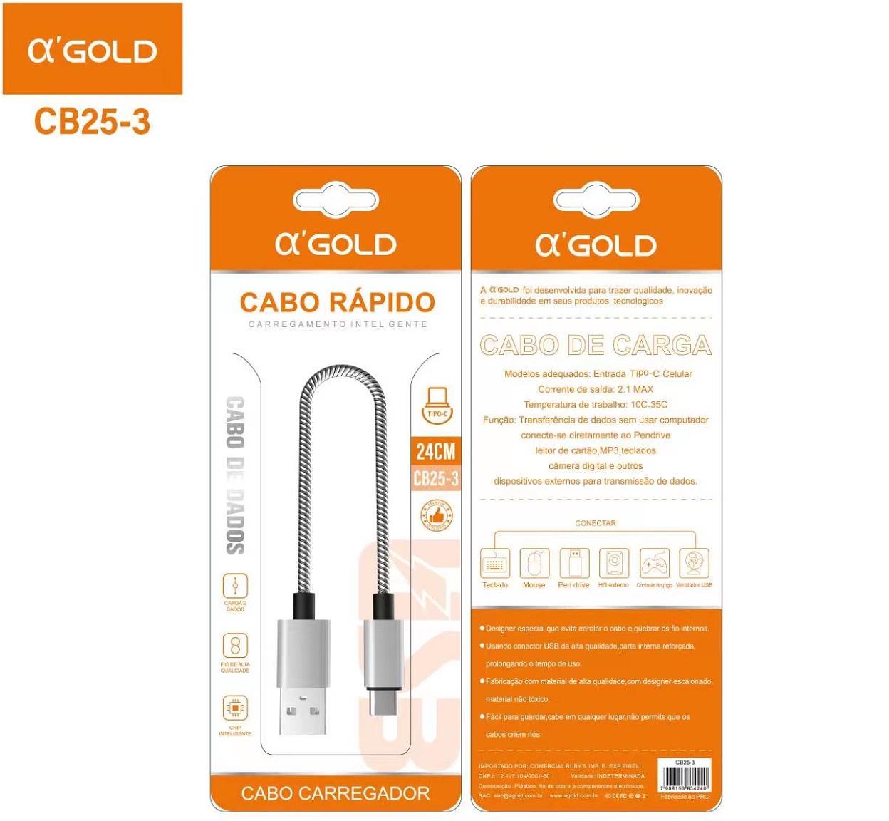 Cabo Rápido Usb Para Typec,24cm, Agold Cb25-3- Prateado