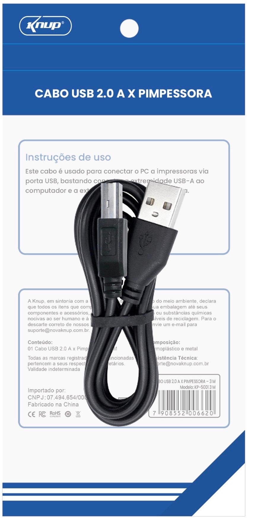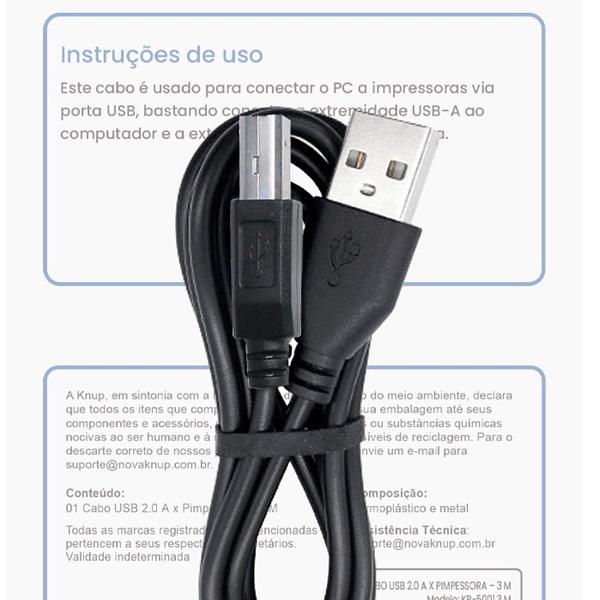 Cabo Usb 2.0 Impressora Universal GROSO 3m