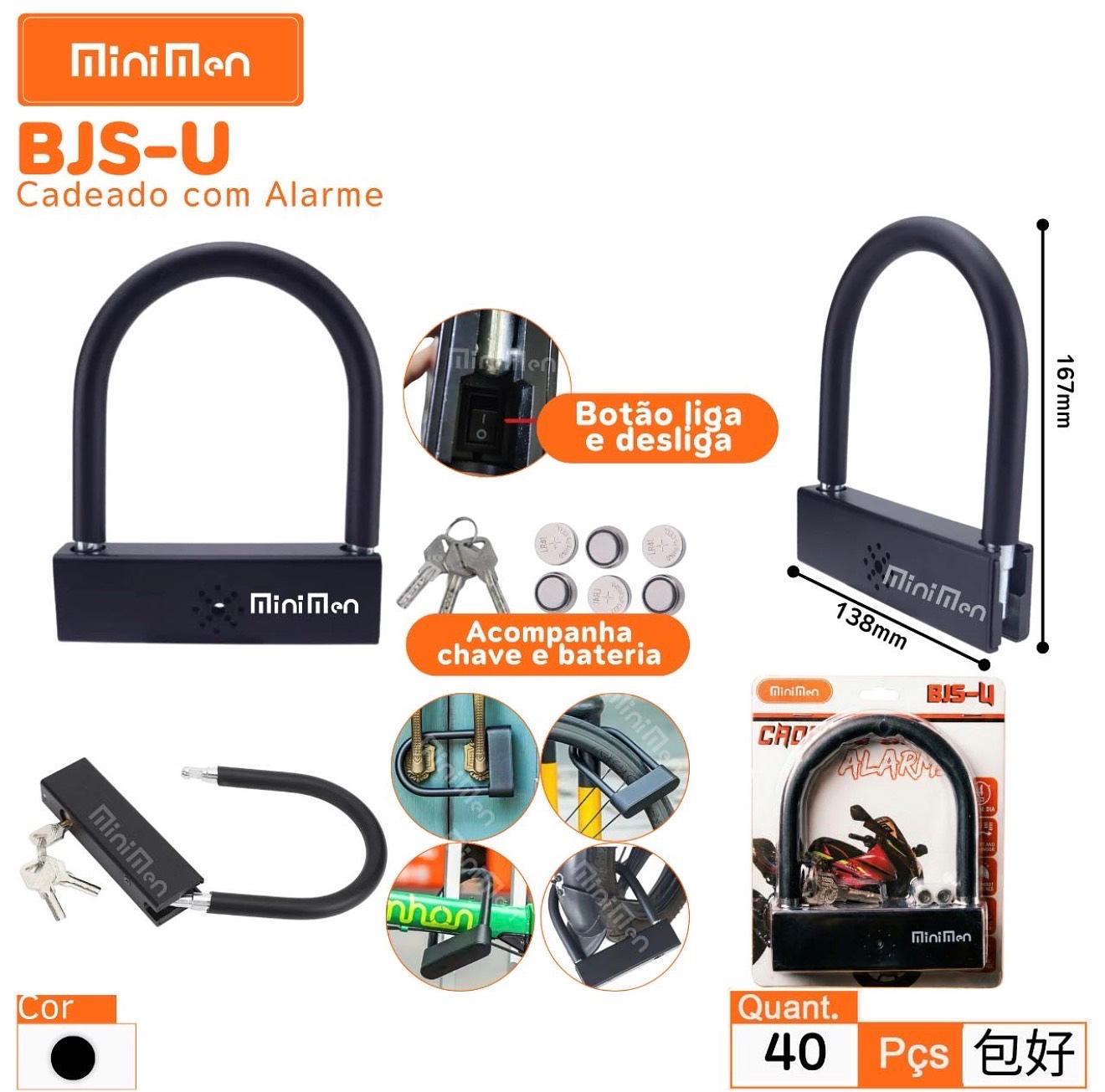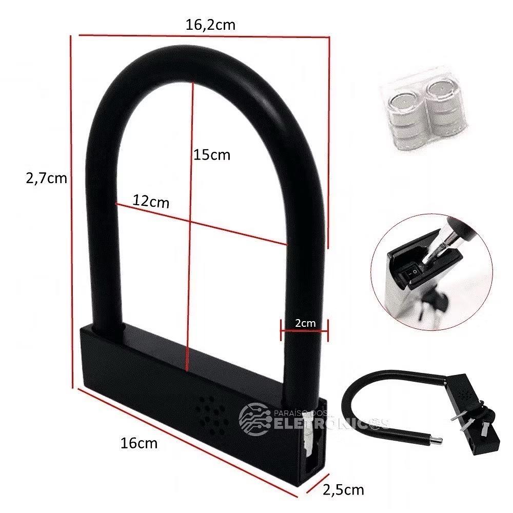 Cadeado Tranca Trava U Com Alarme Para Porta, Portão