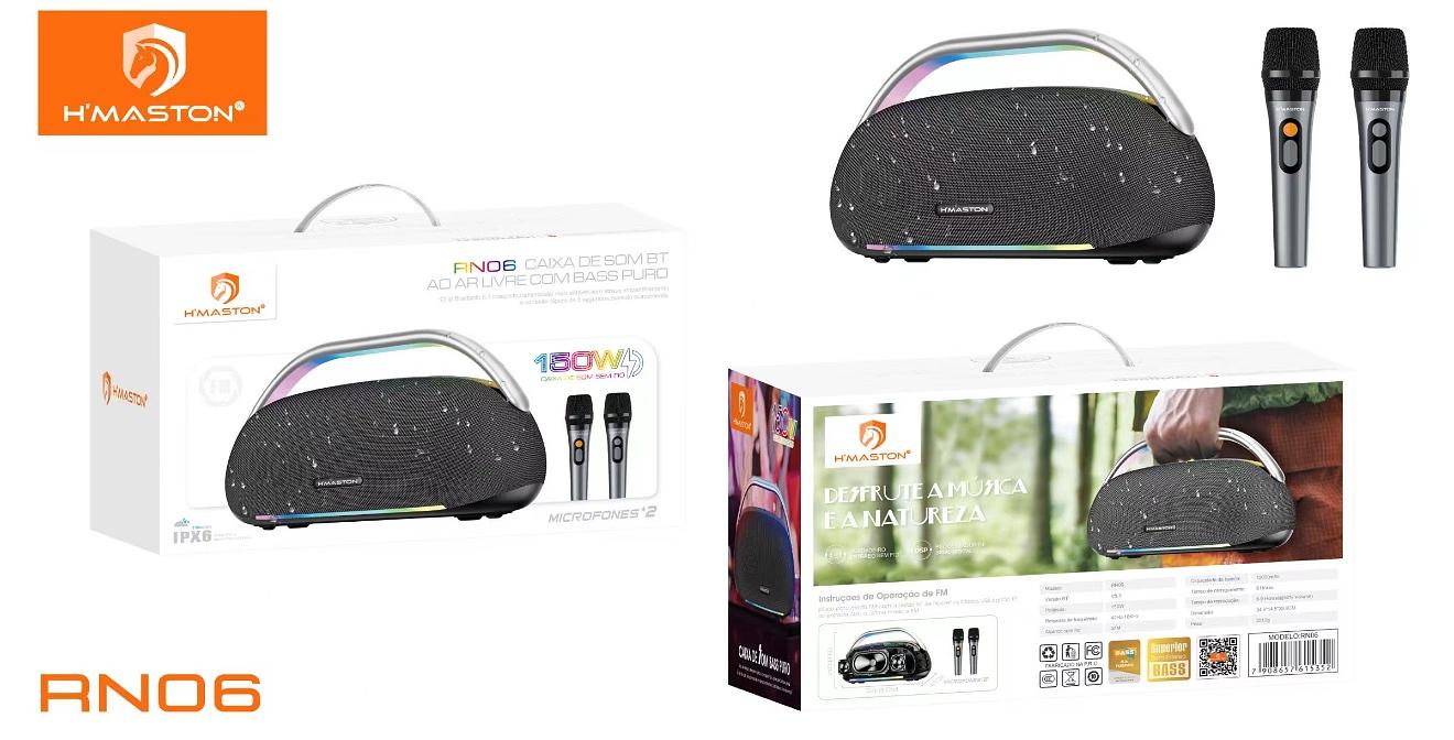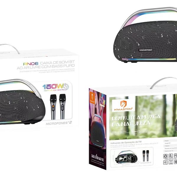 CAIXA DE SOM 150W/ 2 MICROFONES SEM FIO—HMASTON