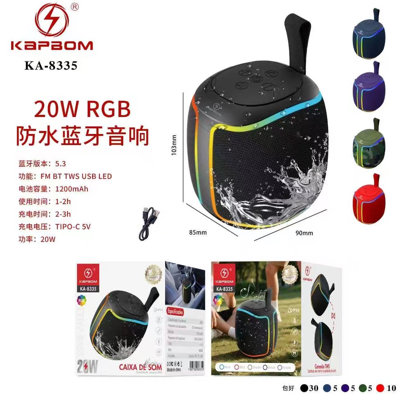 Caixa de som portátil Bluetooth Kapbom 20W TWS LED/USB/SD/FM