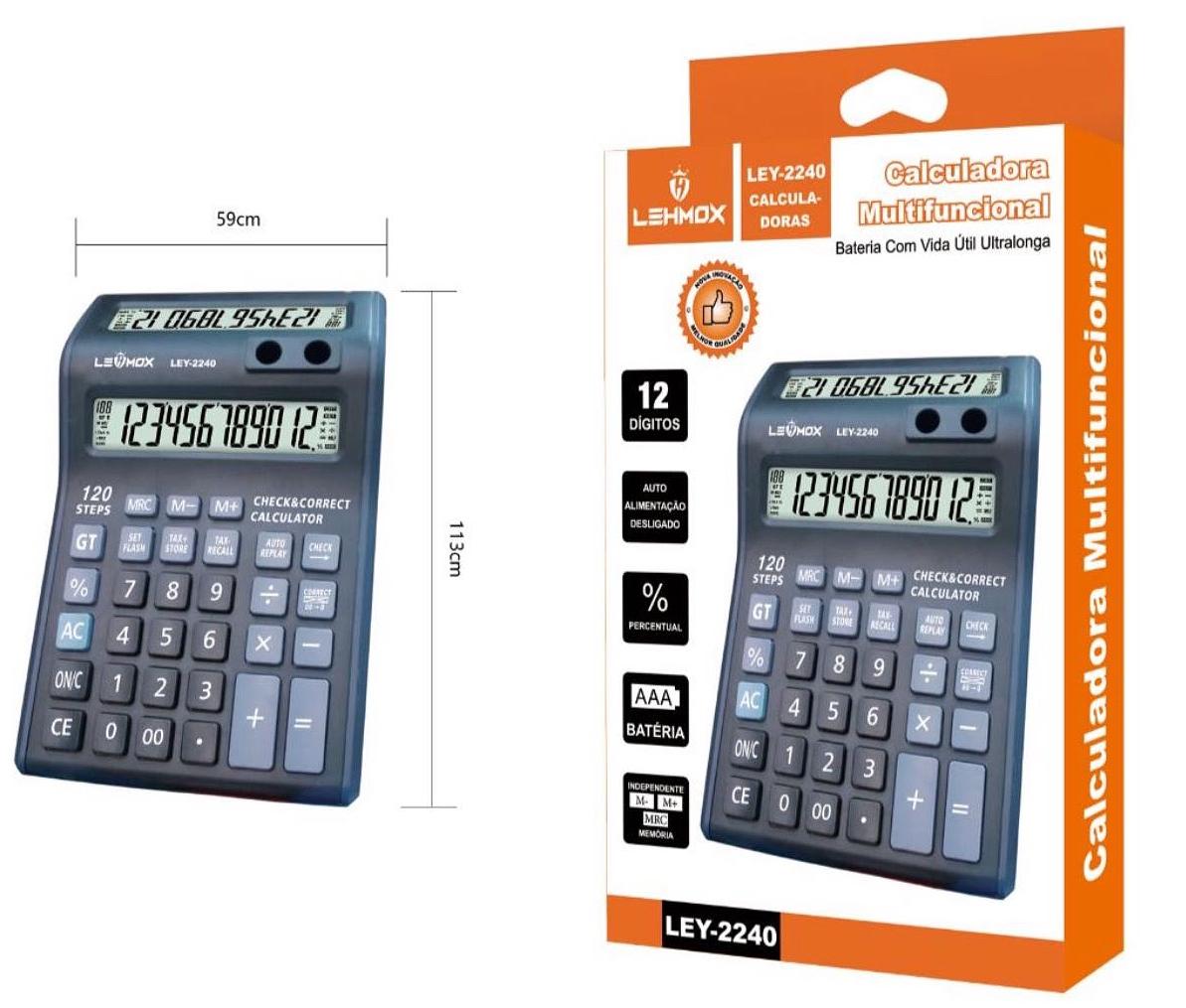 Calculadora Alfacell 12 Dígitos Com Tecla 2 Visor