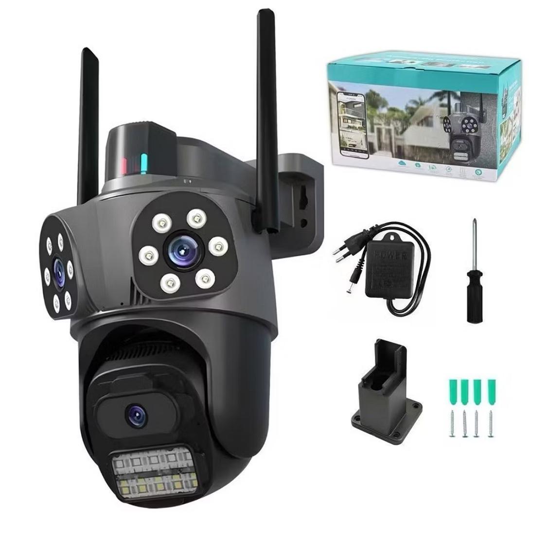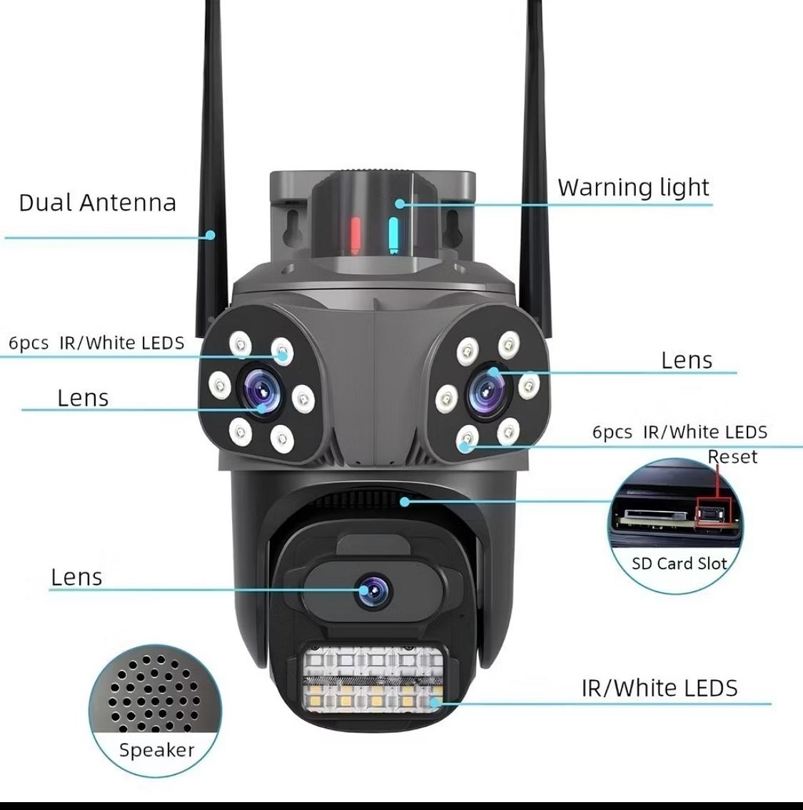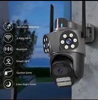 Câmera de segurança Wi-Fi externa com 3 lentes, 360°, zoom óptico, visão noturna, à prova d'água
