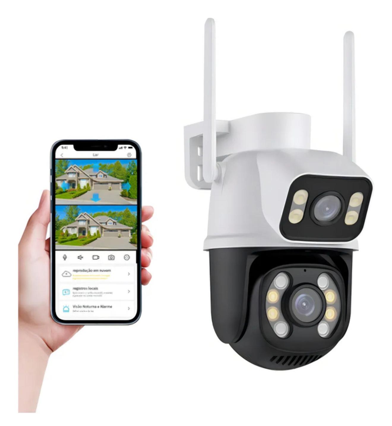 Câmera Inteligente Vigilância Externa Segurança IP66 Câmera Dupla