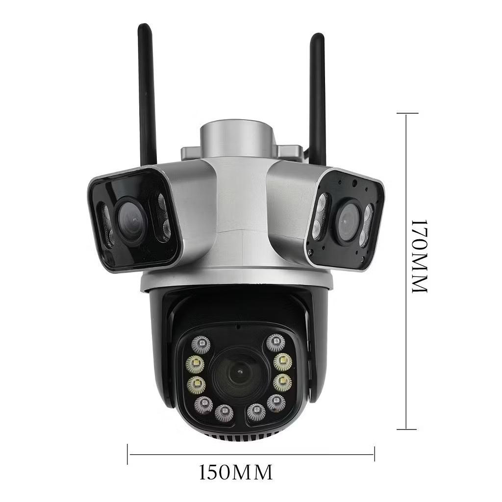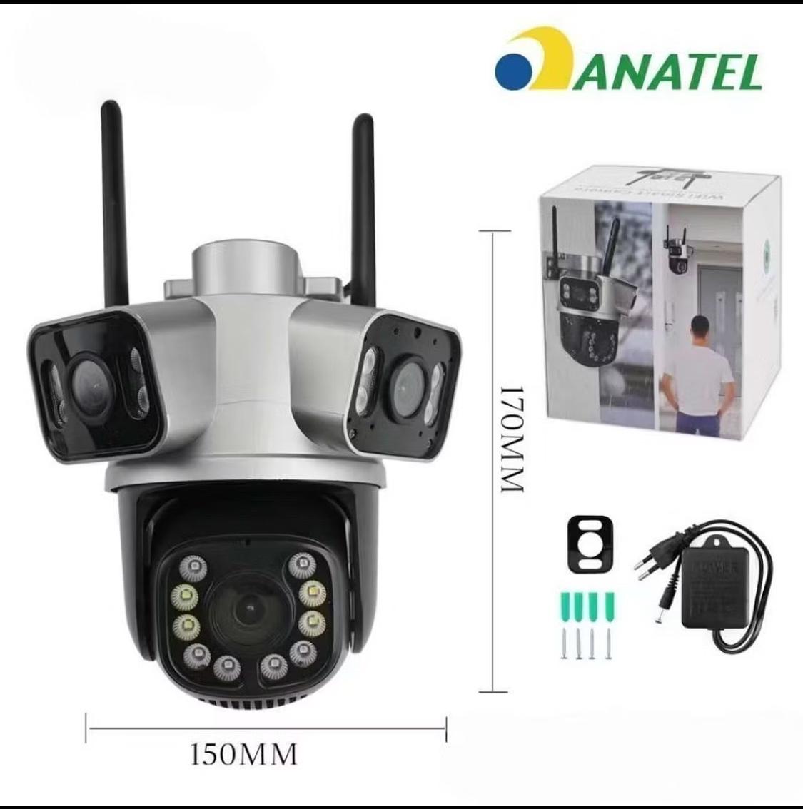 Camera Seguranca Externa 3 Lentes 180° Zoom Ótico Detecta Pessoa Animal Visao Noturna a Prova d Água