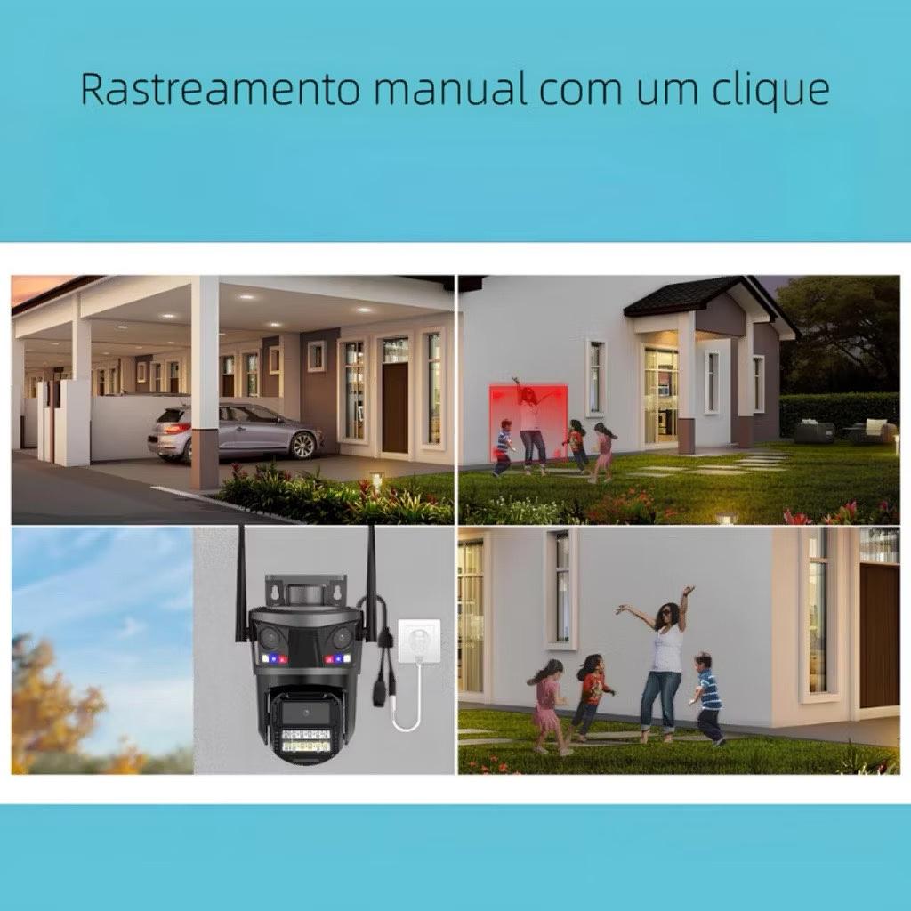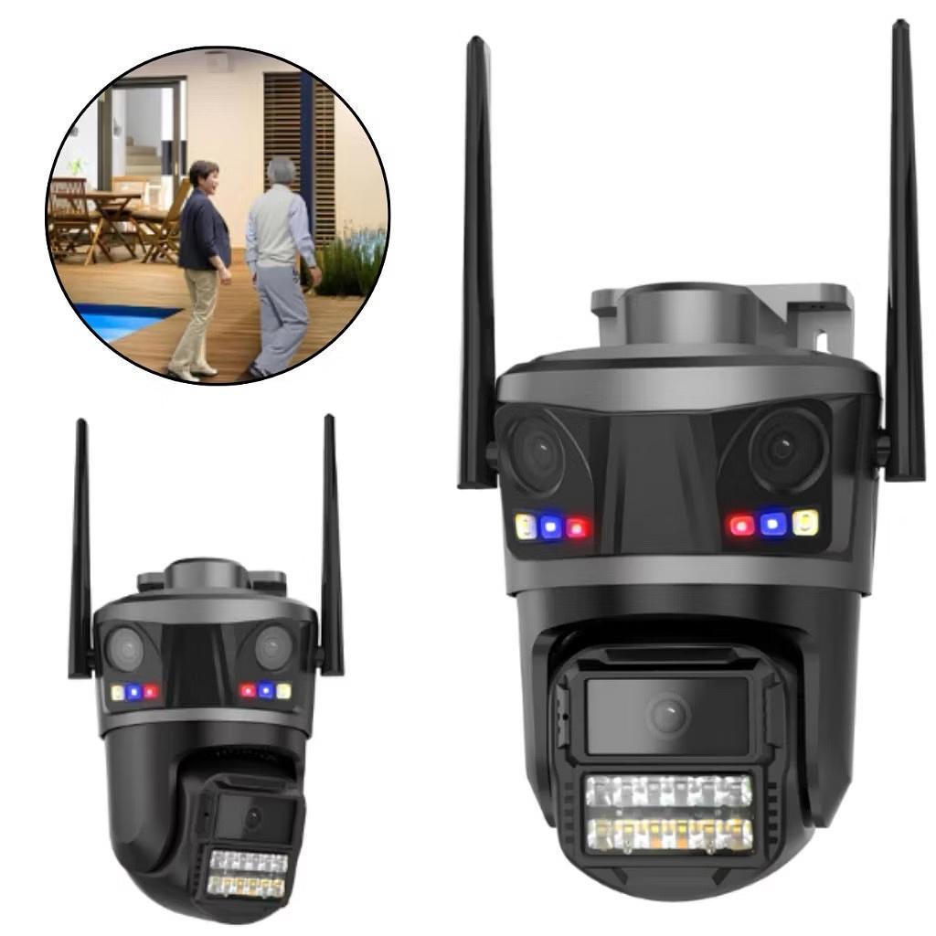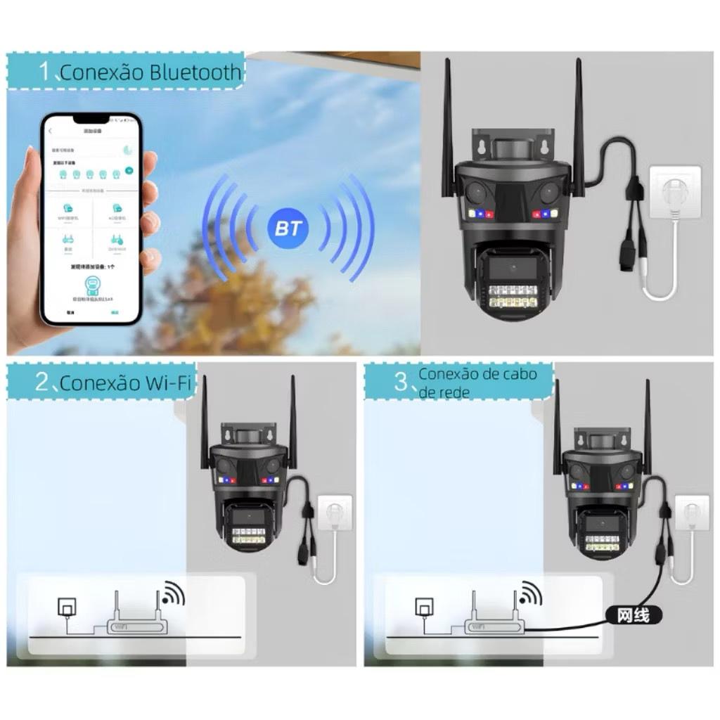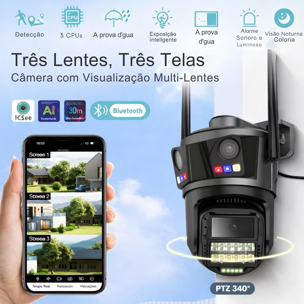 Câmera Segurança Externa 4K Wi-Fi 3 Lentes 360°, Zoom Ótico IA Detecta Pessoa Animal Visão Noturna,Bluetooth
