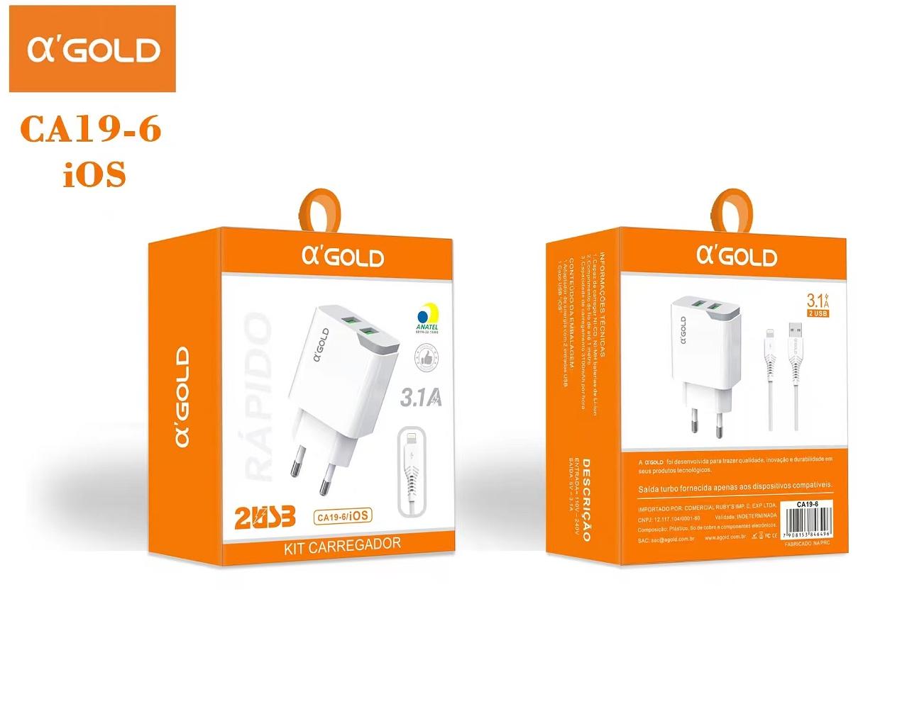 carrecador celula AGOLD 3.1a 2usb para iphone