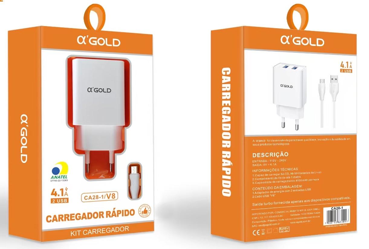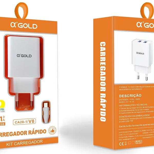 Carregador Completo TurboRápido AGOLD 2 Usb 4.1A v8