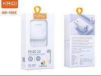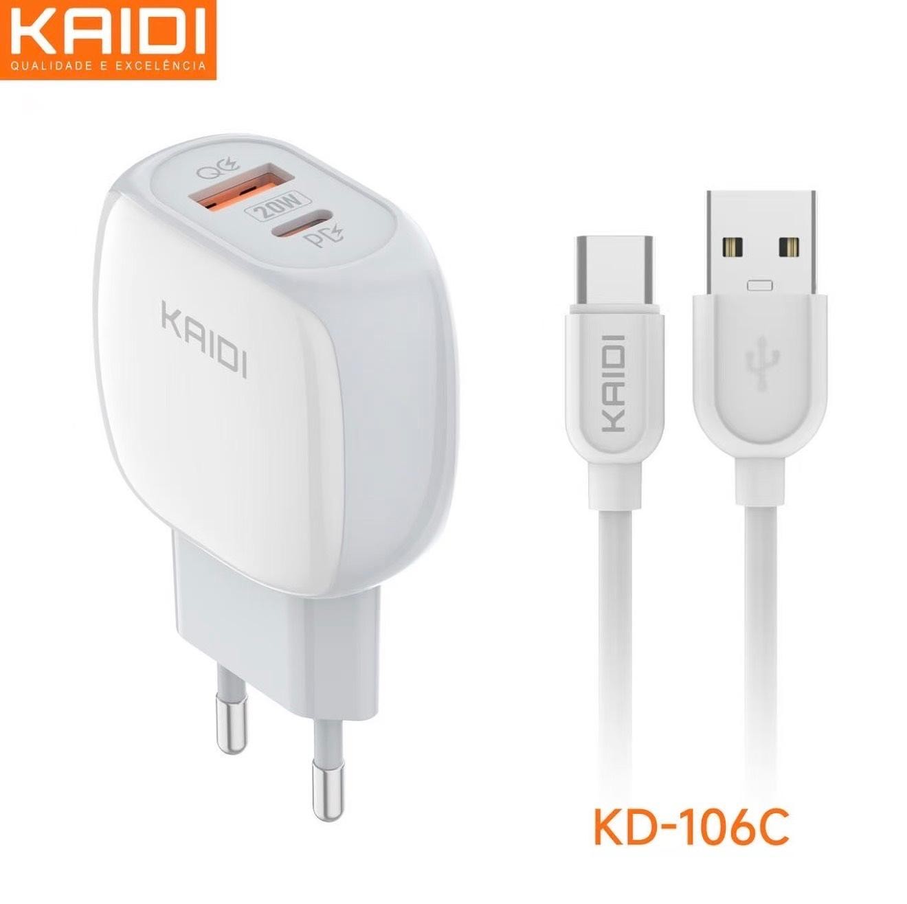 Carregador de Tomada 20W com cabo USB para Tipo C Turbo PD+QC3.0 KAIDI