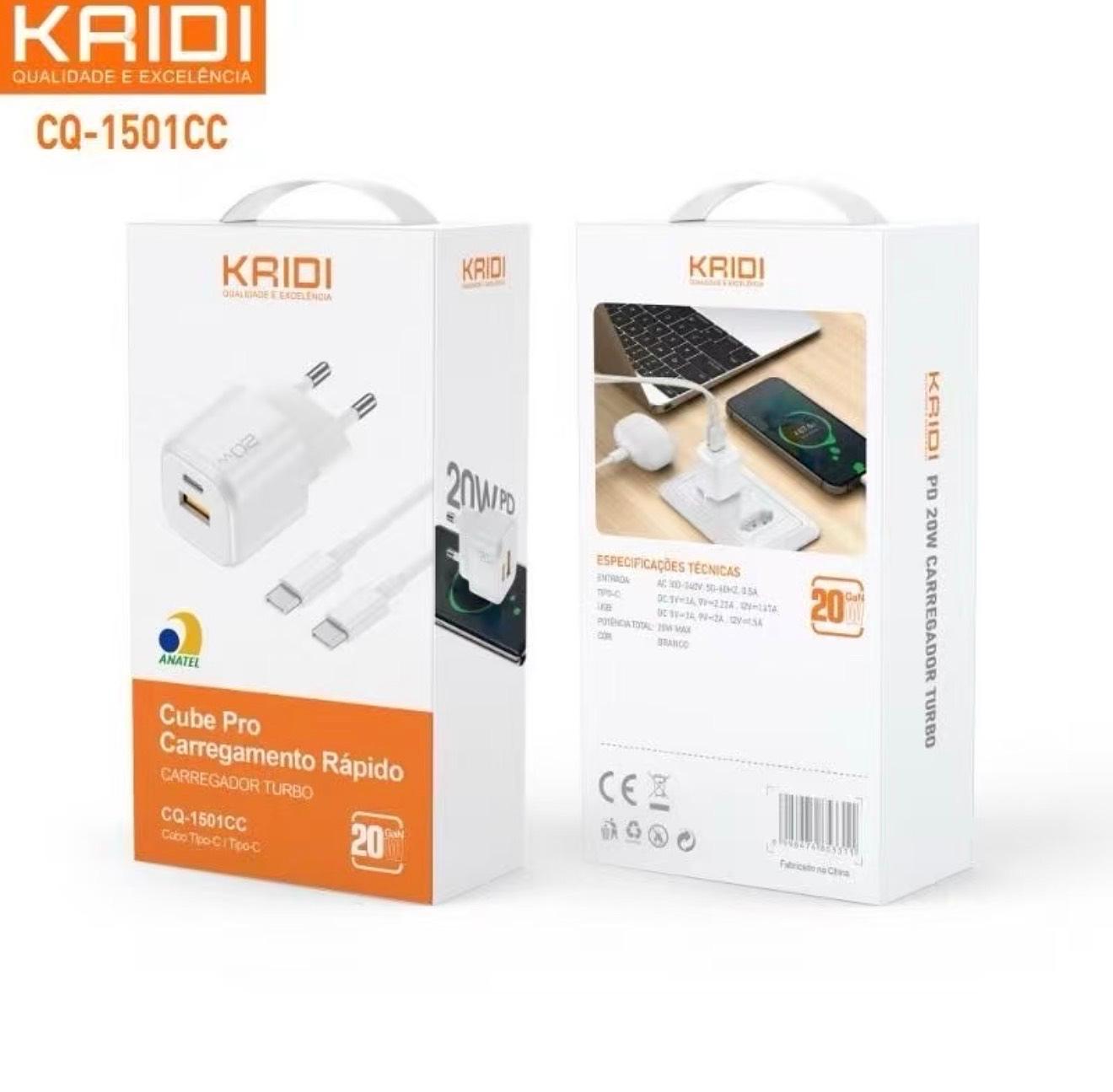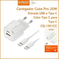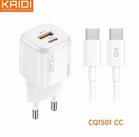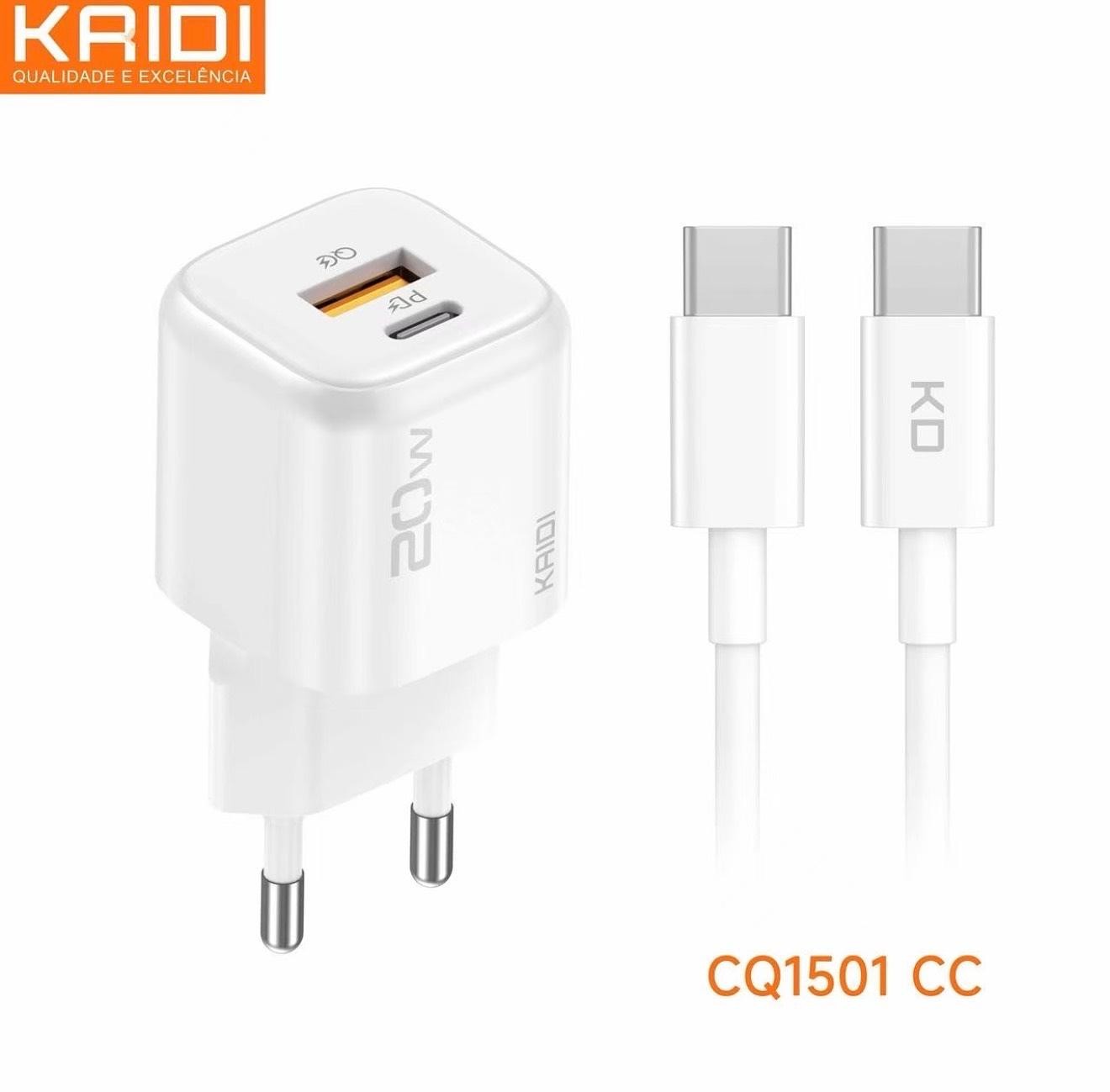 Carregador de Tomada Fonte Turbo 20W cabo Tipo C para Tipo C KAIDI CQ-1501CC