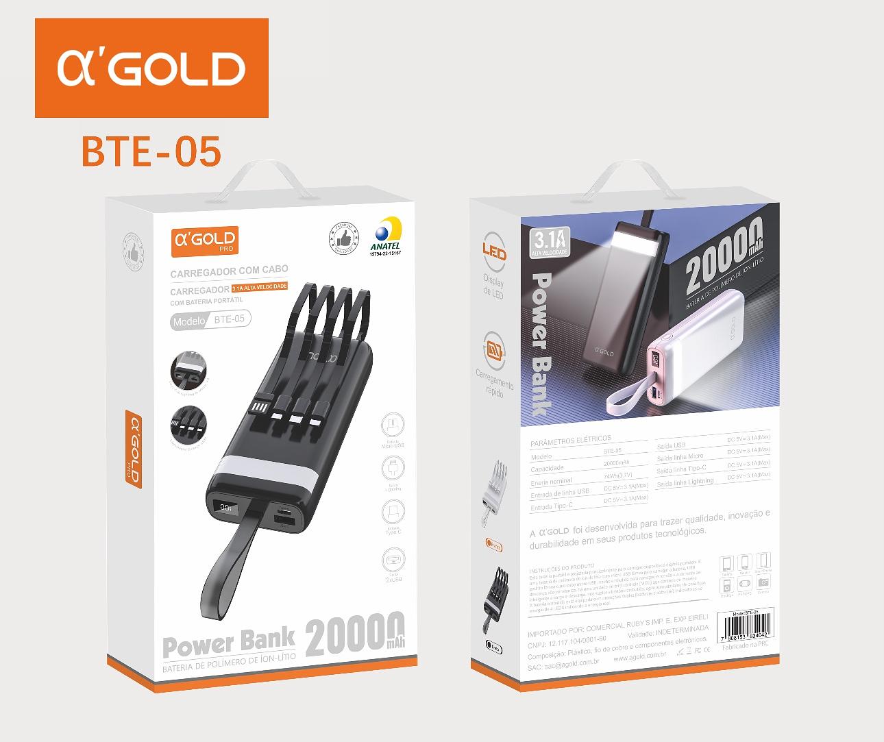 Carregador Portátil Power Bank 20000 Para iPhone E Samsung Preto Universal
