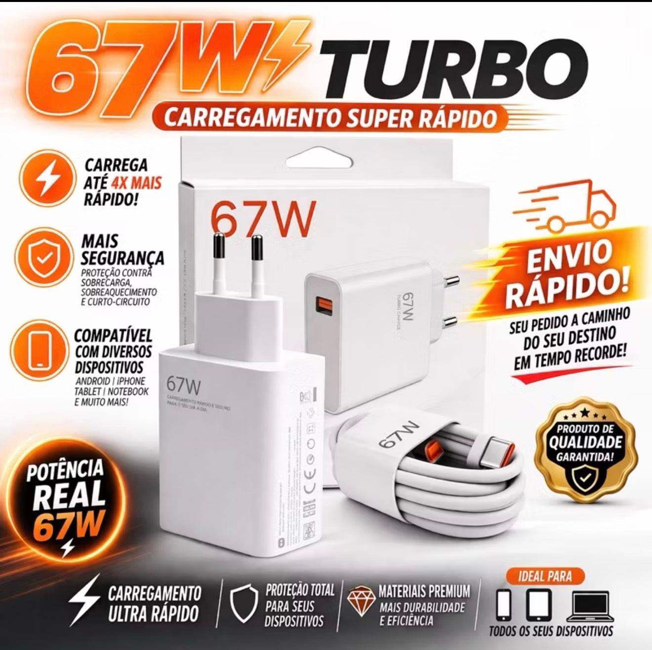 Carregador Super Turbo 67w Xiaomi Poco 10 Pro Mi 11 com cabo typec