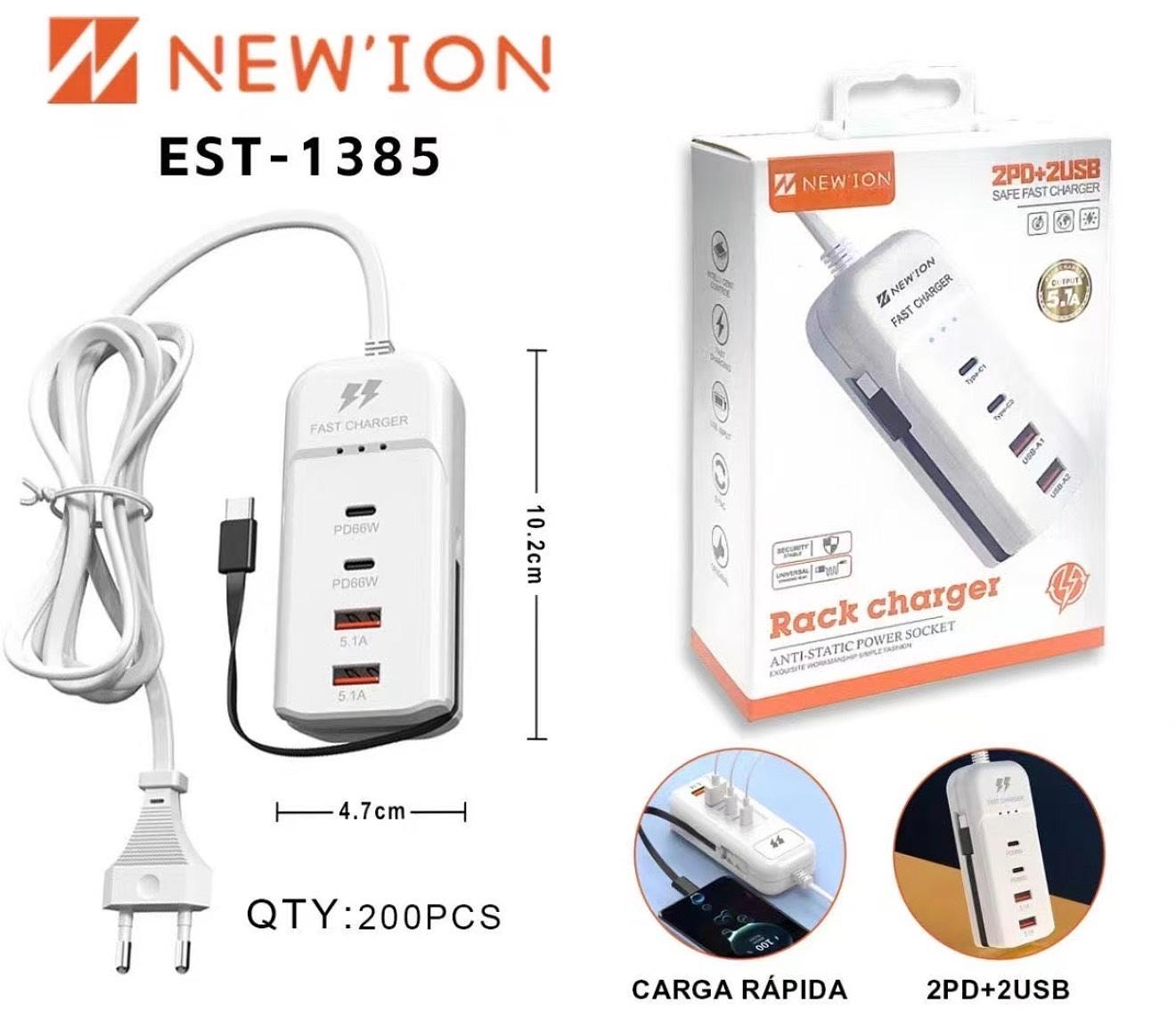 Carregador Turbo 66W Portátil 2USB+2Tipo-C – Fonte Rápida para Celular Tablet e Notebook