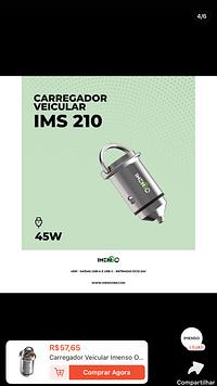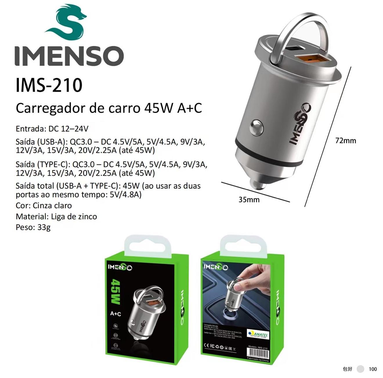 Carregador Veicular Imenso Original Ims210 45w Quick Charge Turbo