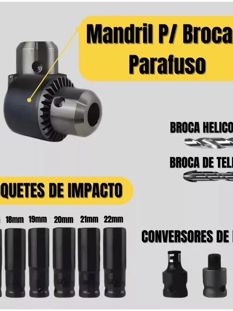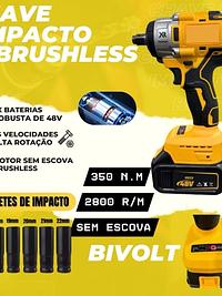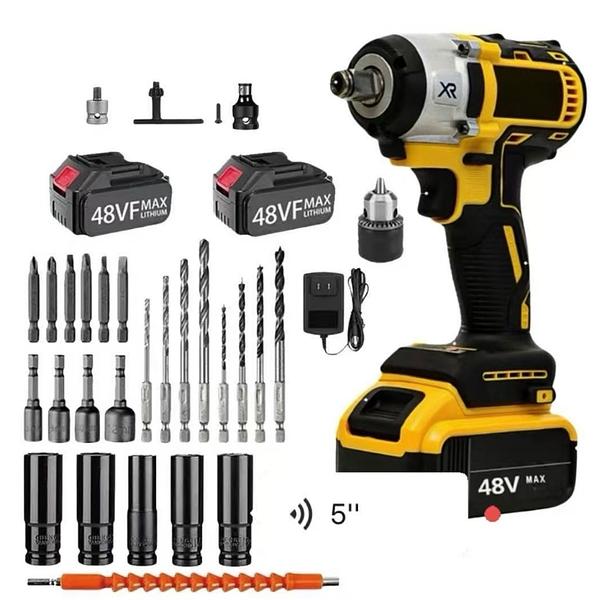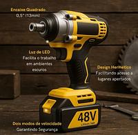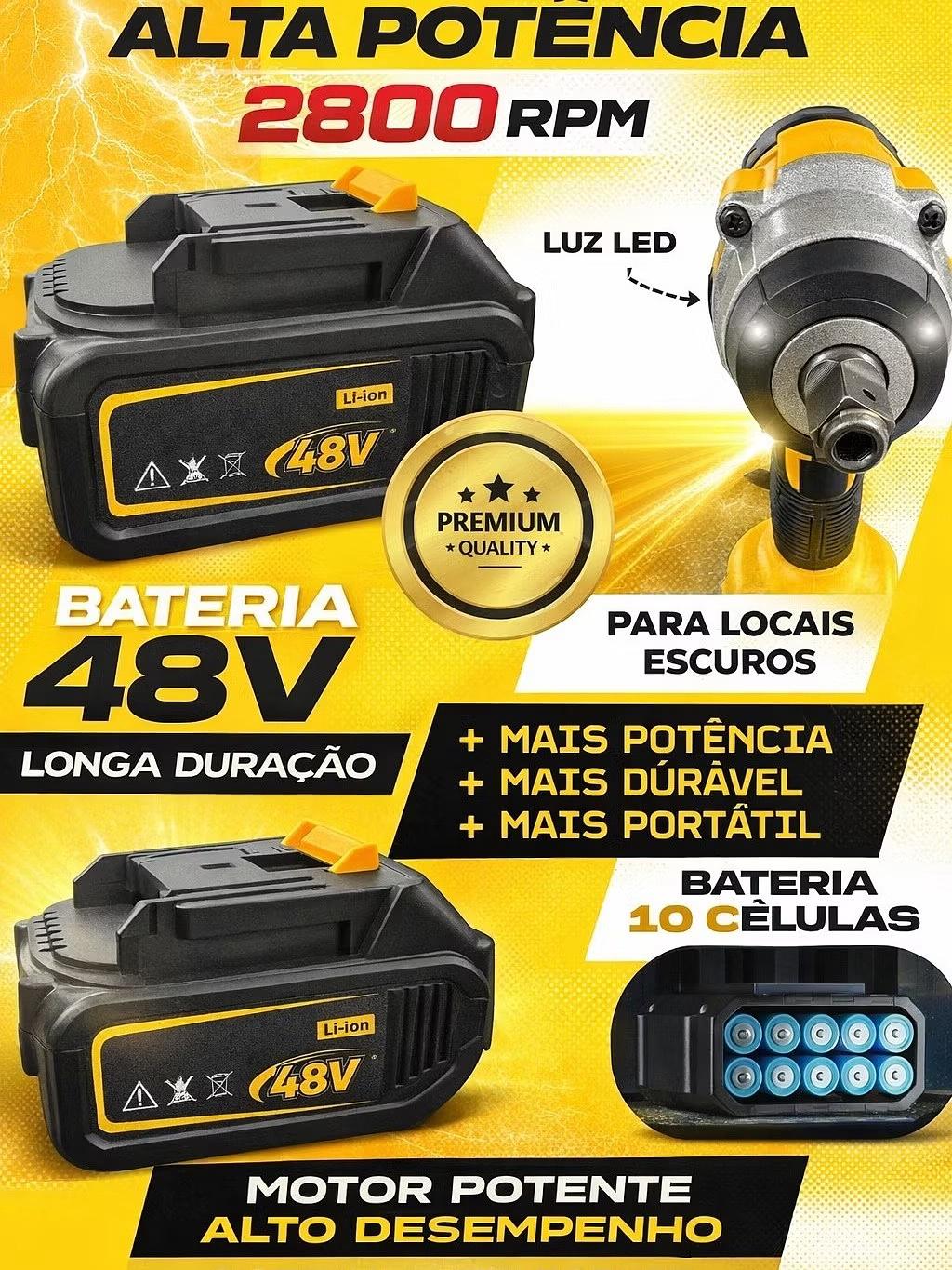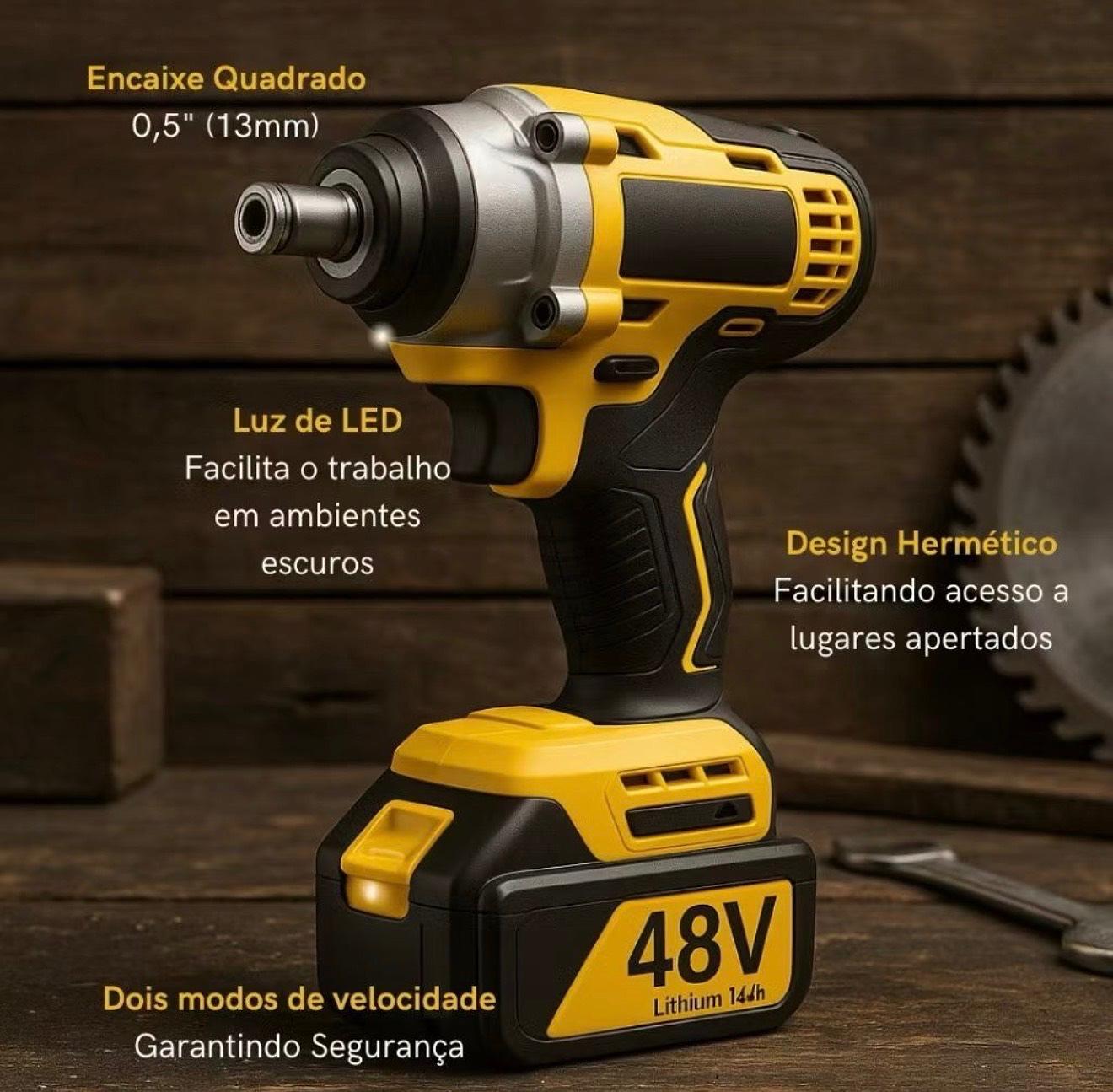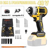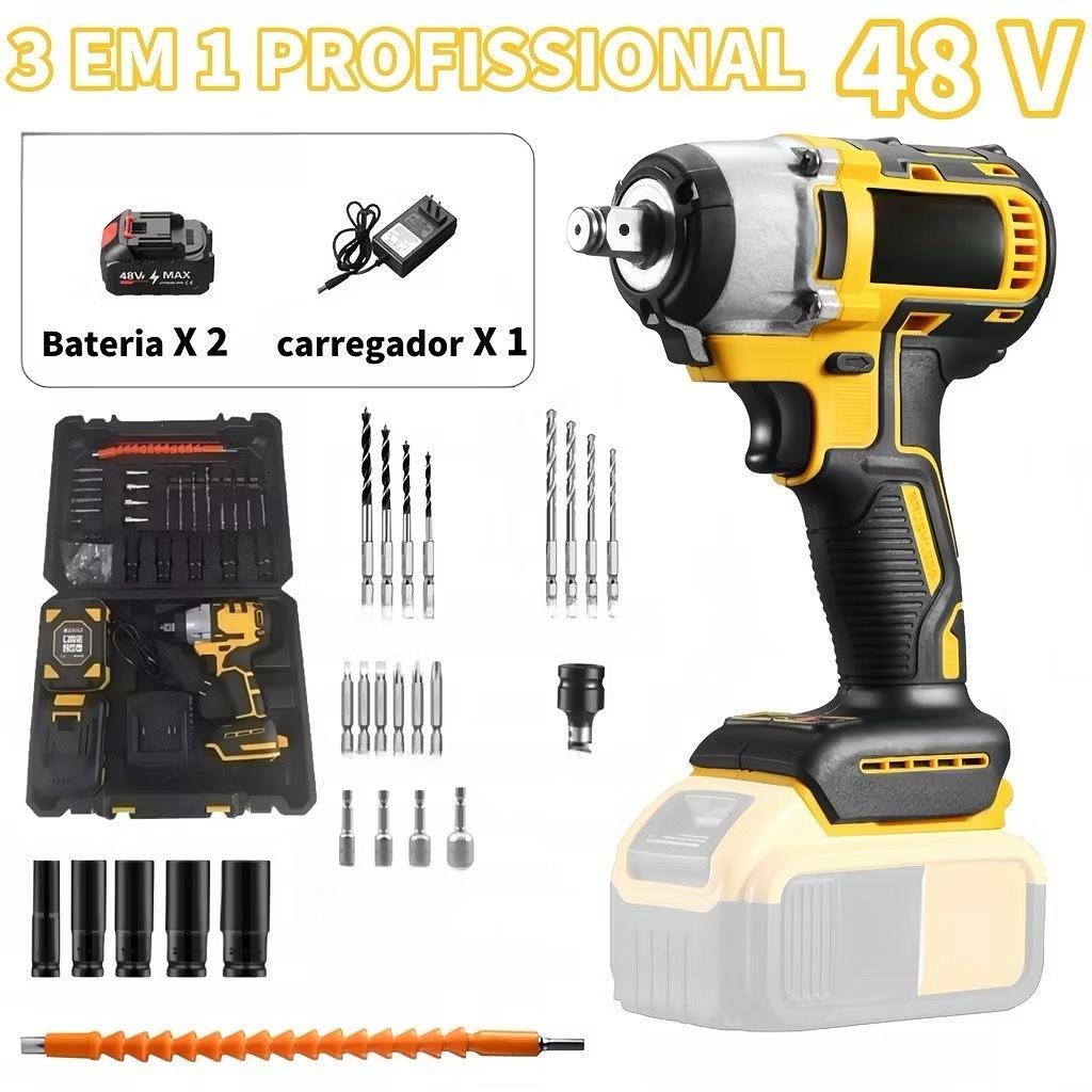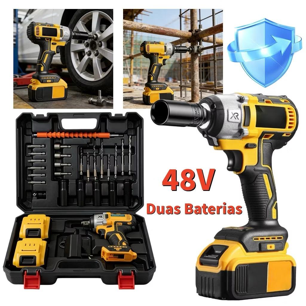 Chave de Impacto 48V Sem Fio Profissional com 2 Baterias de Lítio Parafusadeira Furadeira Bivolt Alta Potência
