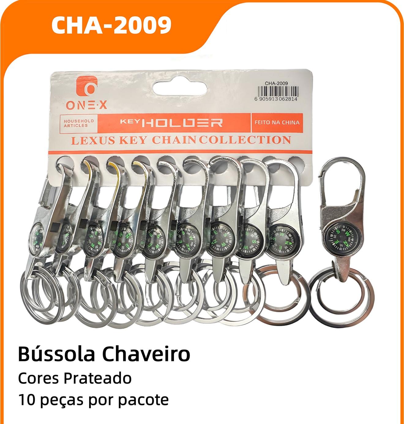 Chaveiro Mosquetão Com Bussola pacote com 10pc