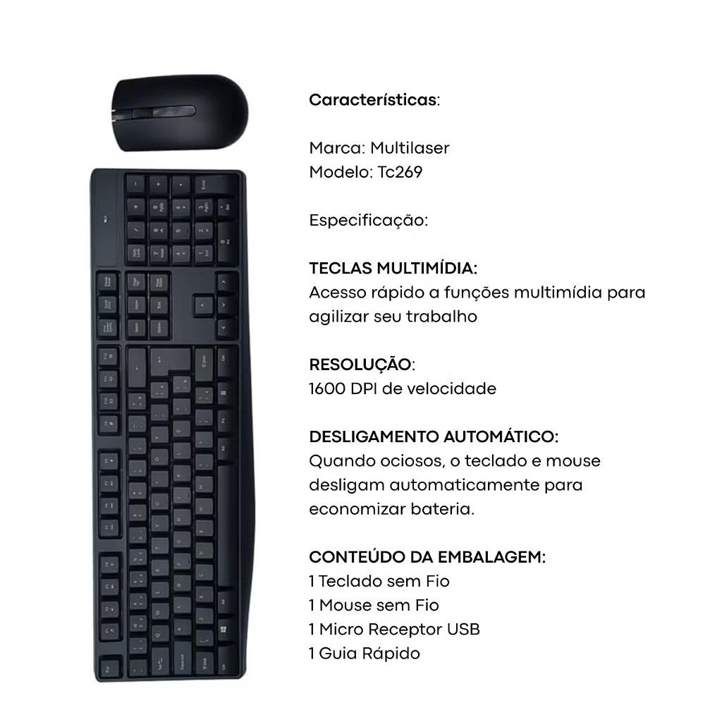 Combo Teclado E Mouse Sem Fio Multilaser Usb 2.4 Ghz