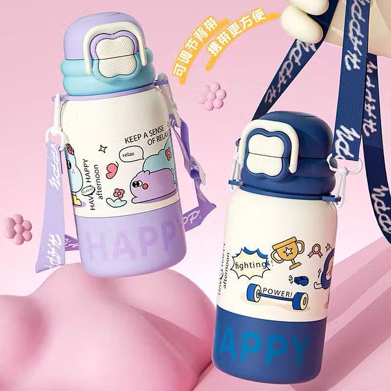 Copo térmico 450ml infantil de alto valor, alça portátil, copo de palha fofo para estudantes, um copo, três bebidas, copo de a