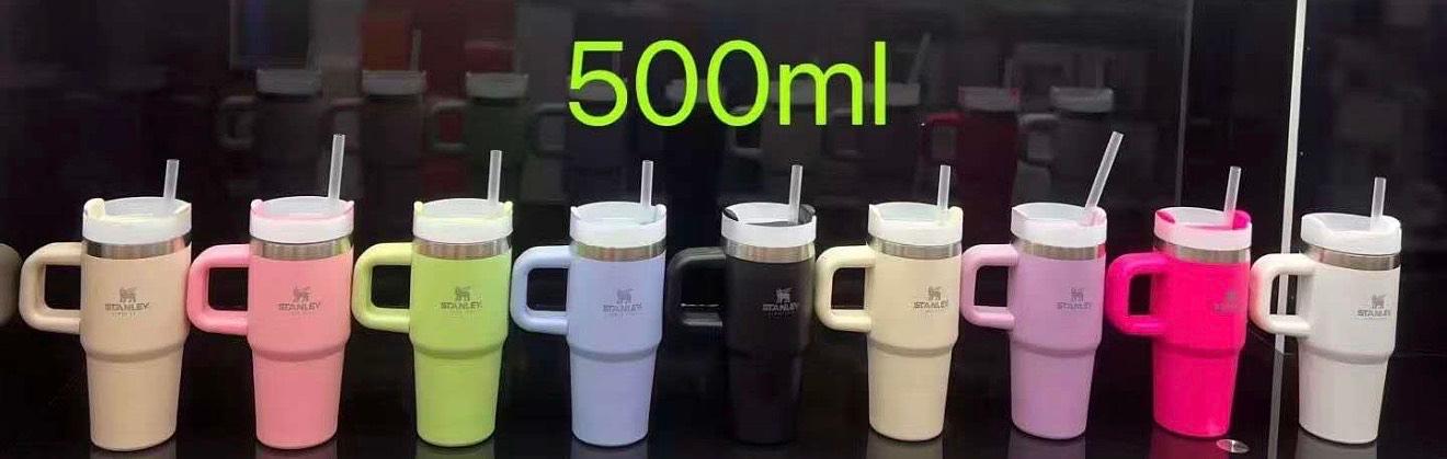 Copo térmico de aço inoxidável 500ml com alça e canudo