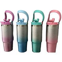Copo Térmico Feminino Glitter Brilho 900ml Resistente Grande Com Tampa Dupla Camada Aço Inox
