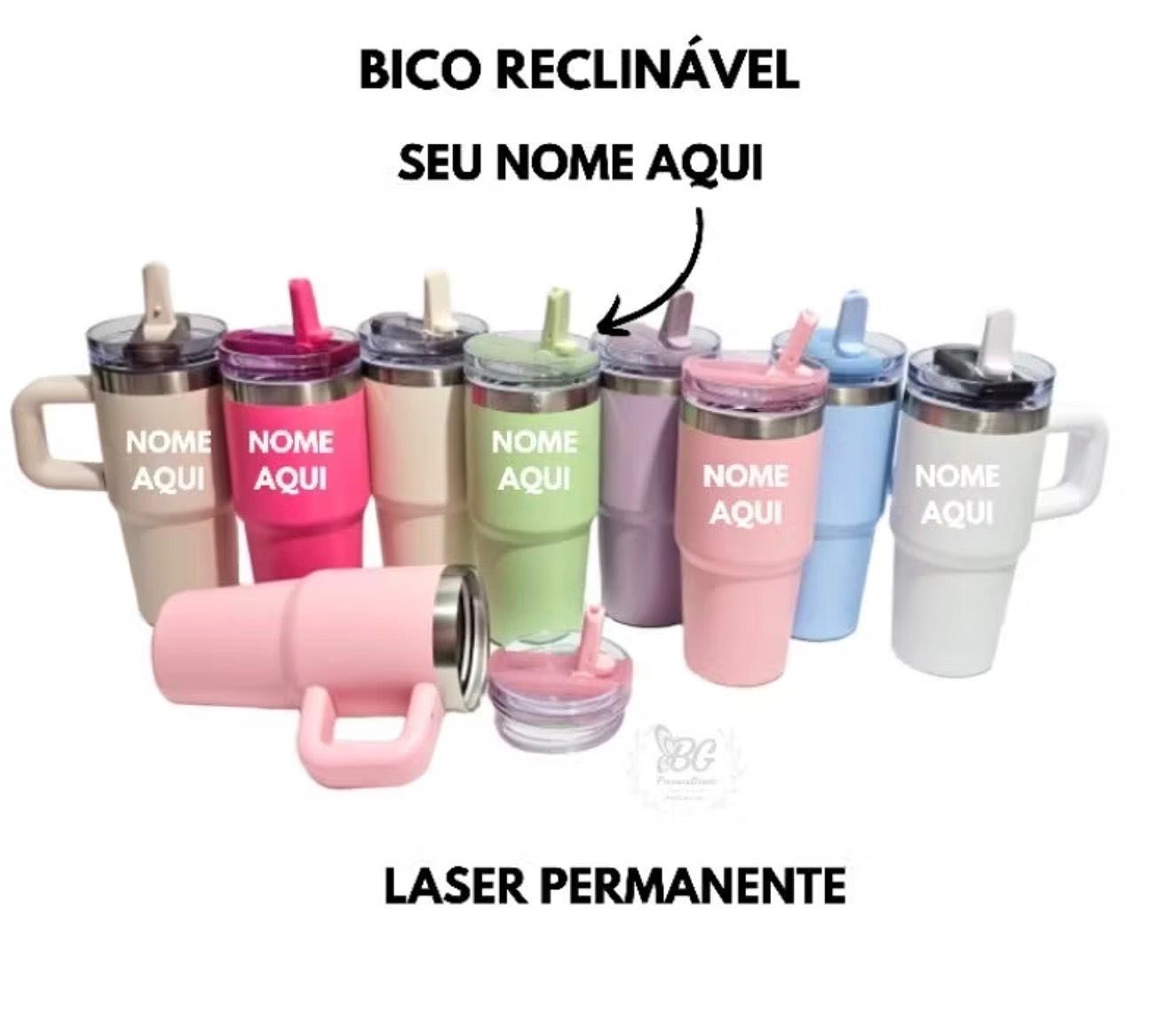 Copo térmico inox 500ml com tampa e canudo personalizado