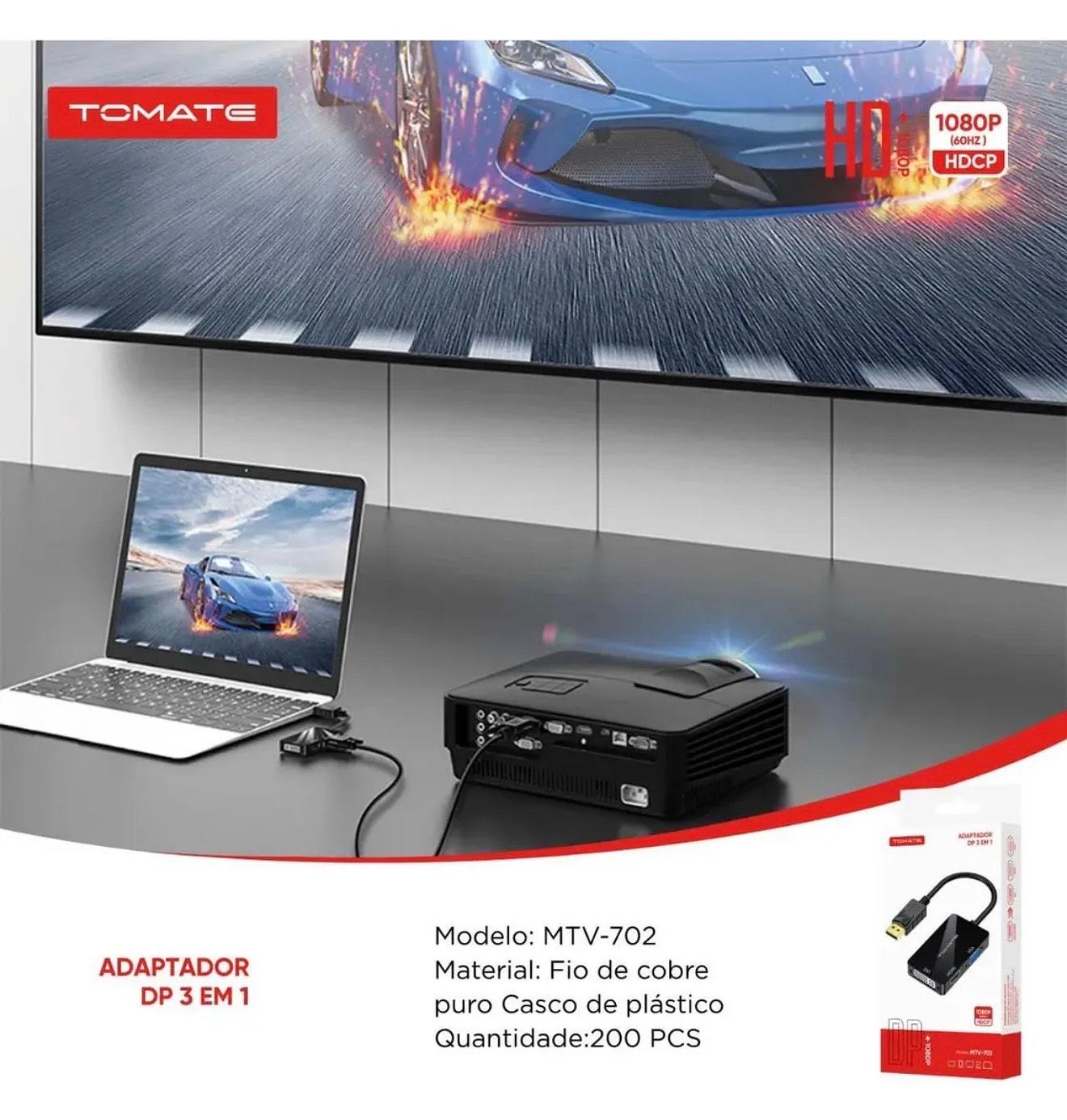 Display Port Adaptador Conversor 3 Em 1 Para Dvi Hdmi Vga—TOMATE