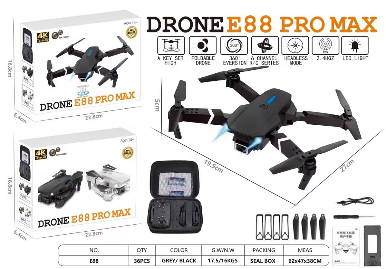 Drone E88 4k Prof câmera angular hd, wi-fi, fpv, alt hold, dobrável, rc quadrotor, helicóp,livre, brinquedos p crianças Com dois baterria