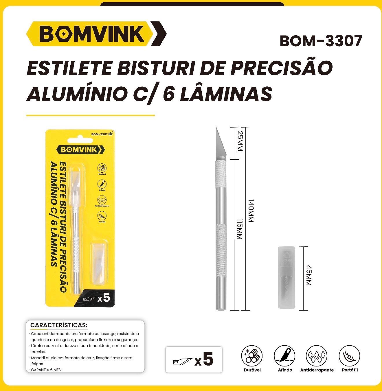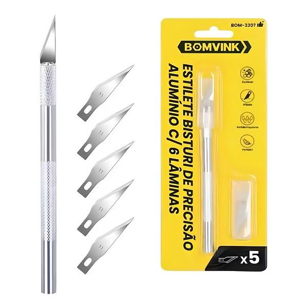 ESTILETE BISTURI DE PRECISO ALUMNIO C/ 6 LMINAS