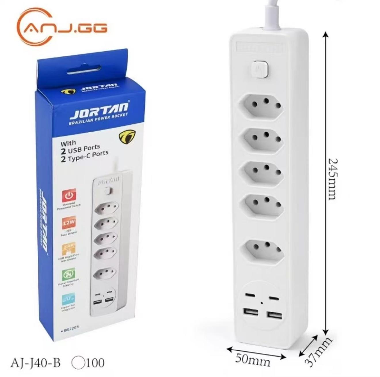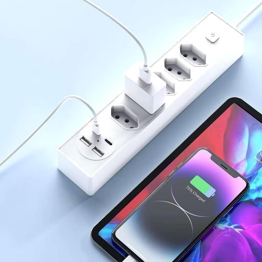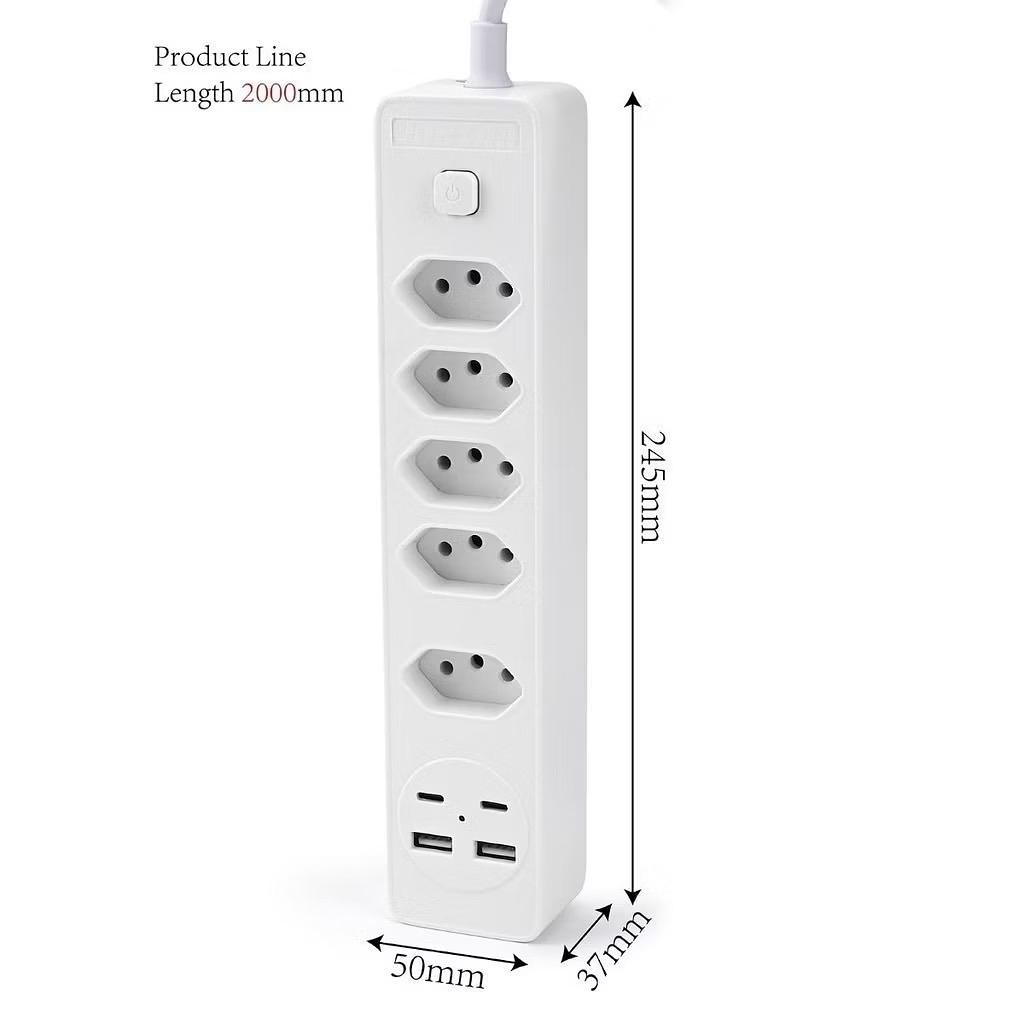 Filtro de Linha Régua de Tomadas 5 tomadas 2 USB 2 Tipo C 100-250V Bivolt