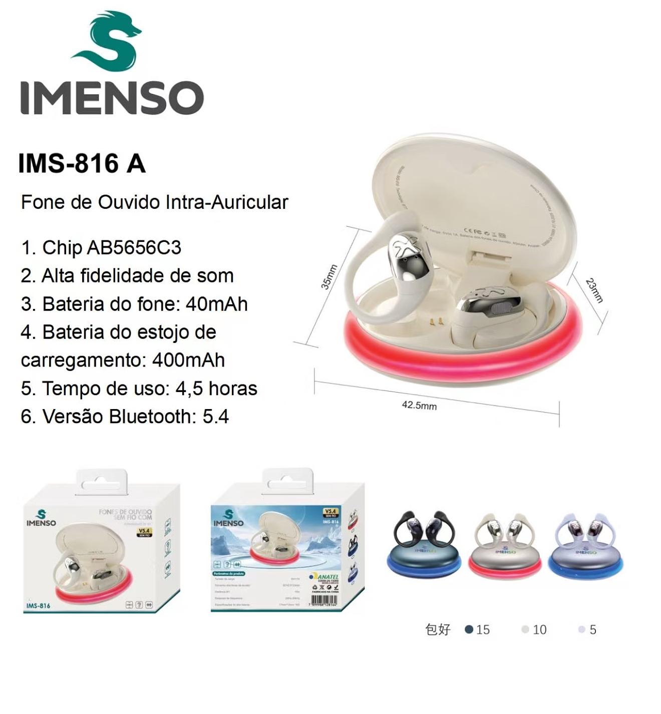 Fone Bluetooth IMENSO Sem Fio 5.4 Som Potente e Bateria Duradoura
