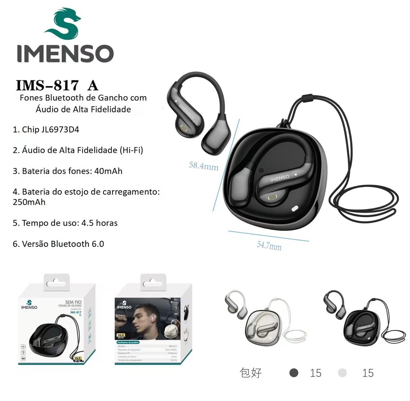 Fones Bluetooth de Gancho com Audio de Alta Fidelidade—IMENSO