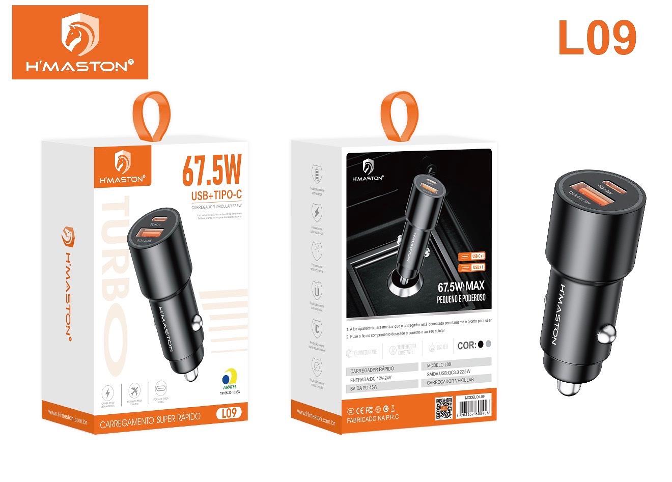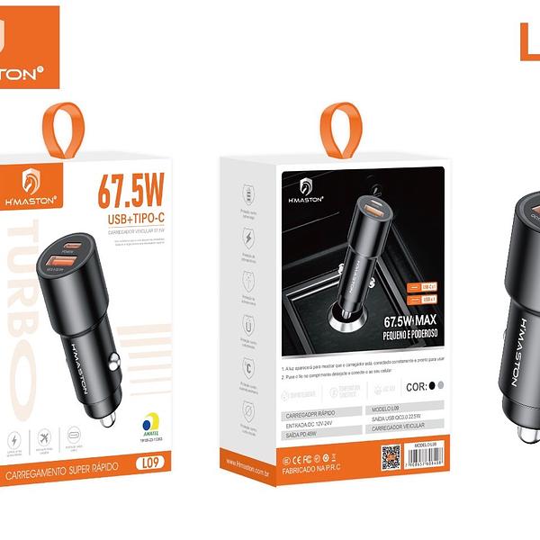 Fonte Carregador carro USB + Tipo-c 67.5W Hmaston