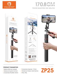 H'maston ZP-25 Tripé Bastão De Selfie Comprimento Estendido 170.8cm controle sem fio Bluetooth