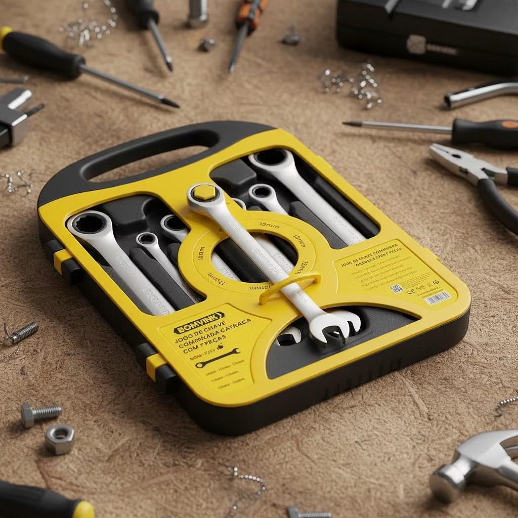 Jogo Chave Ferramenta Combinada Catraca Boca Profissional 7 Peças